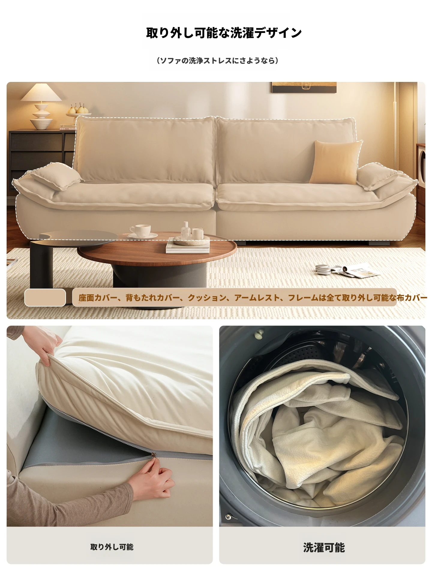 新作!ラウンドセーリングソファ - 小型リビングにぴったり!猫の爪に強い防猫抓布を使用。クリーミーな風合いで、全てのカバーは簡単に洗濯可能。雲のような柔らかさで、快適なひとときをお届けします!