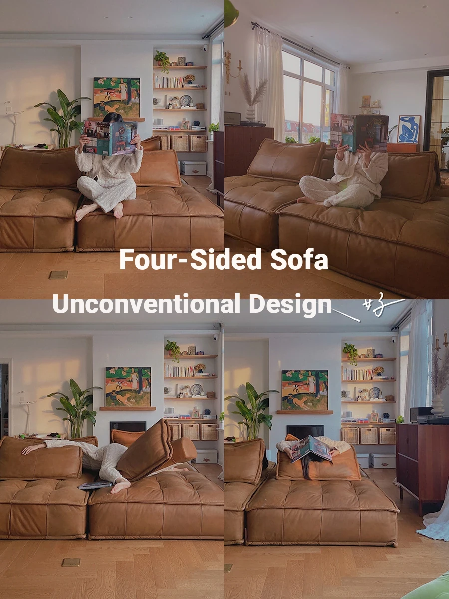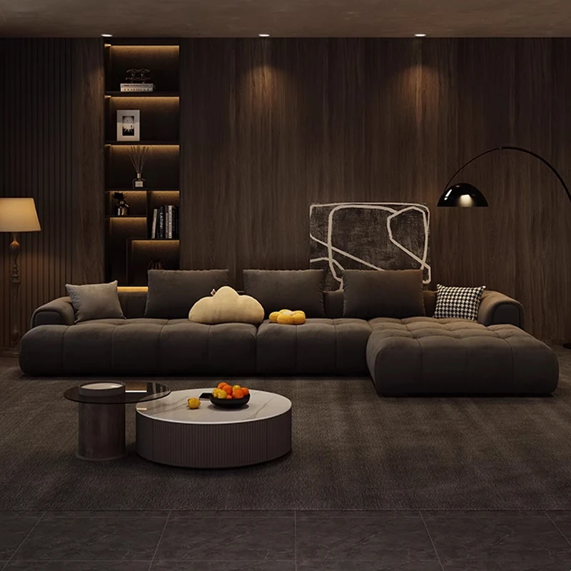 Yianleju PEANUT B Sofa – Italian Style Modular Cotton-Linen Upholstered Feather Block for Living Room, Lazy Chic Comfort Combination