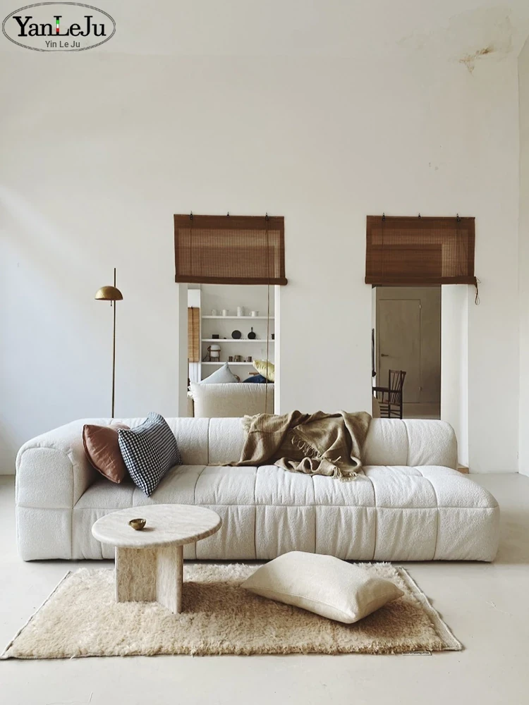 Italian Minimalist Modern Light Luxury Cream-Colored Cloud Puff Cotton Candy Sofa for Small Living Rooms - Trendy Design for Chic Spaces
