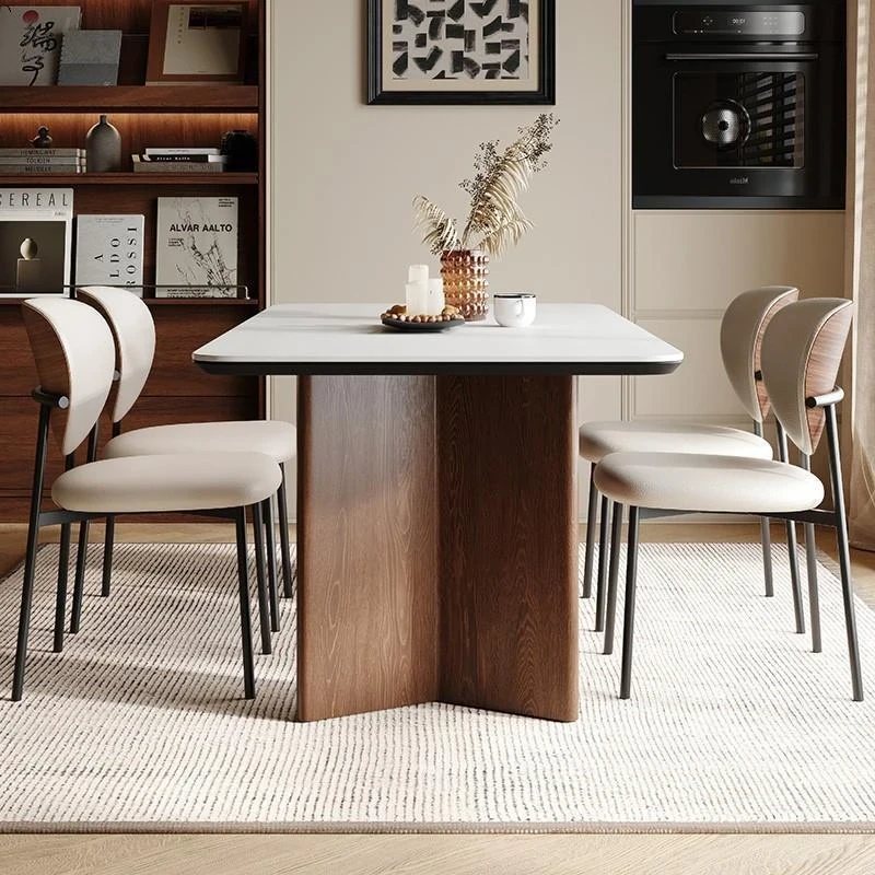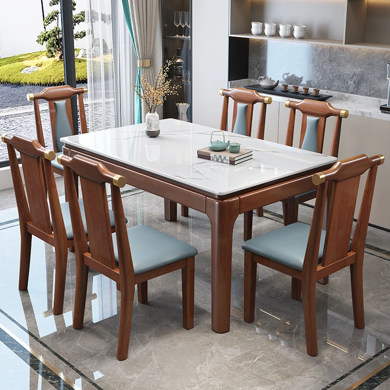 新中式スタイルの長方形岩板ダイニングテーブル - モダンでシンプル、コンパクトなリビングにぴったり!高級感溢れる無垢材のテーブルとチェアのセットで、食卓を華やかに演出します。