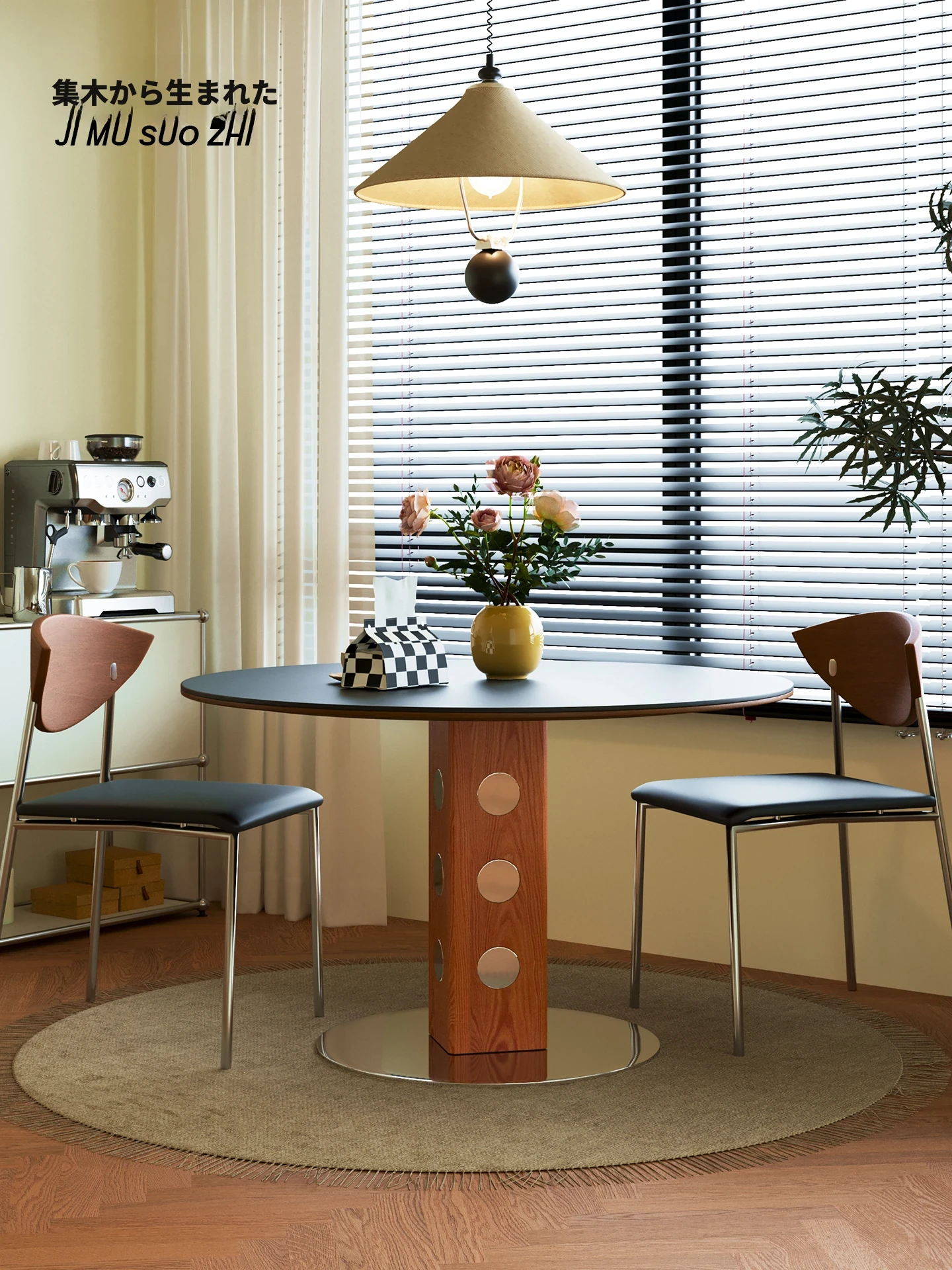 洗練された中古風の丸テーブル、狭いスペースにもぴったり!岩板使用のバウハウススタイル、侘び寂びの美しさを感じるダイニングセット。伯格デザインで、あなたの食卓に特別な雰囲気をプラス!