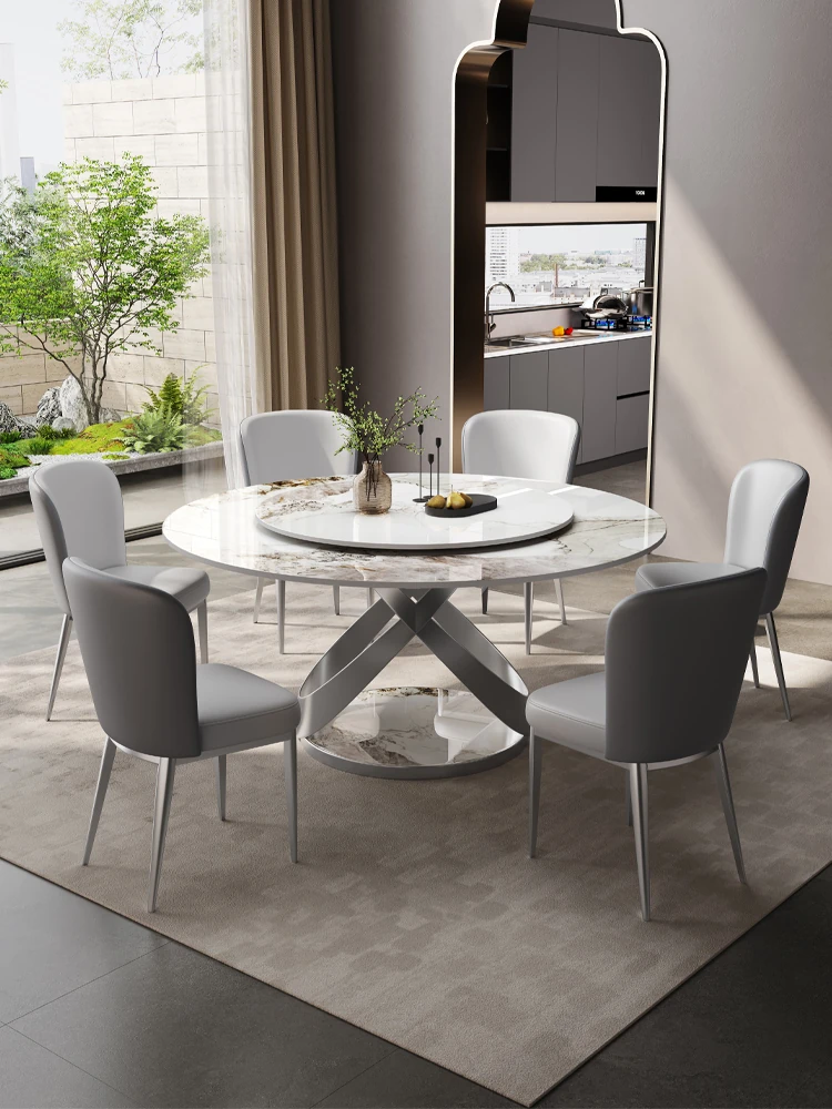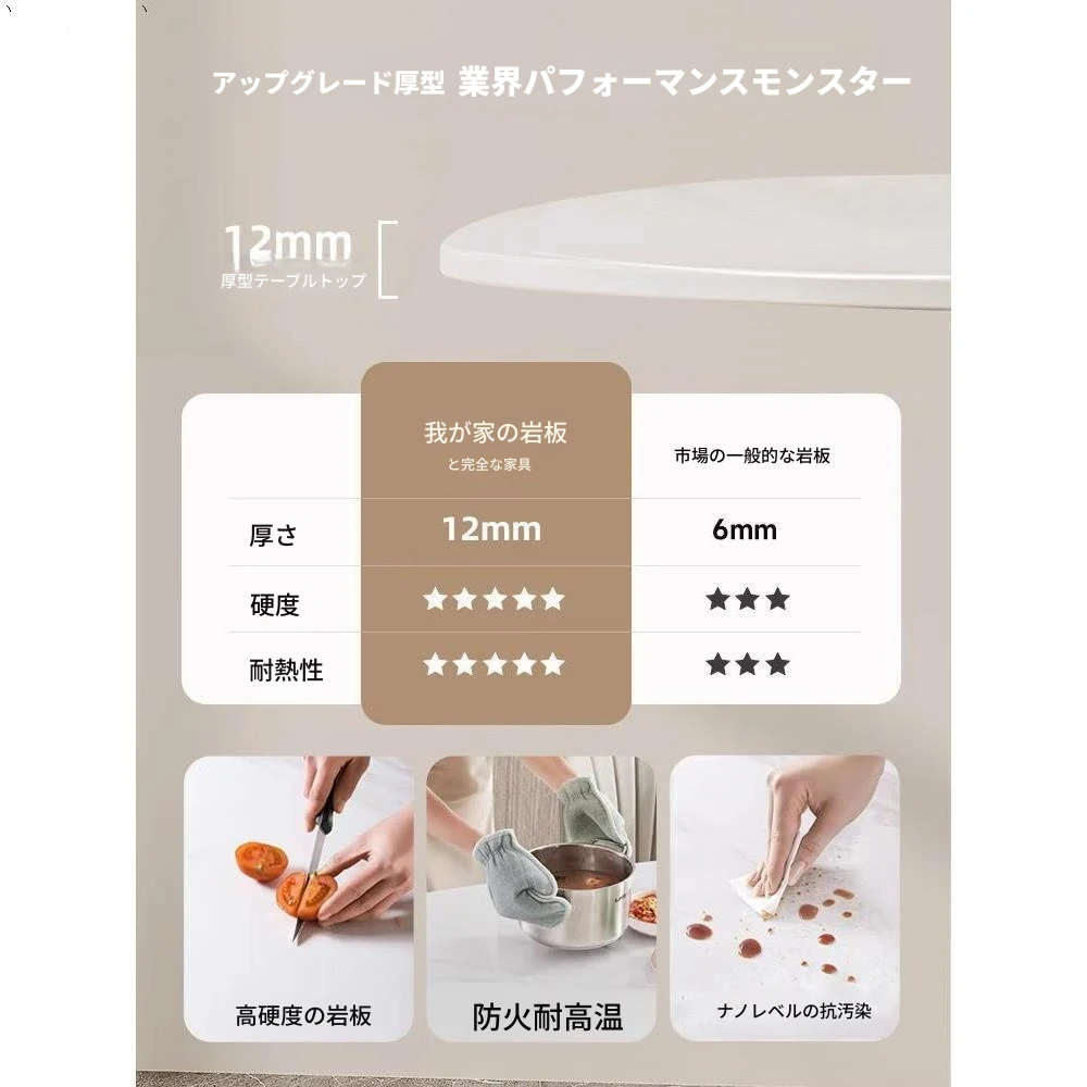 イタリアンミニマリズムの軽やかなラグジュアリー!高級岩板製の円形ダイニングテーブル&チェアセット。小さな家にぴったり、電磁調理器にも対応!食事を楽しむ新しいスタイルをお届けします。