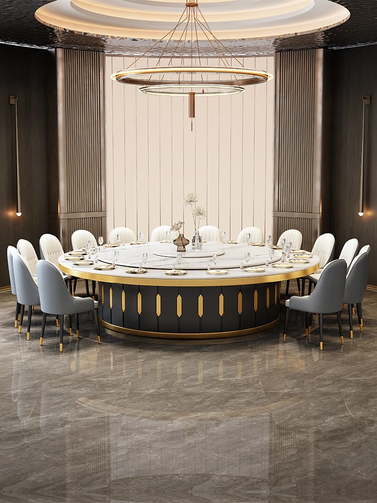 ホテル用電動ダイニングテーブル 大型サークルテーブル 20人用 回転式 軽奢華 モダンシンプル 電磁調理器付き 火鍋テーブル レストラン用テーブル&椅子 セットで贅沢な食事体験を提供!