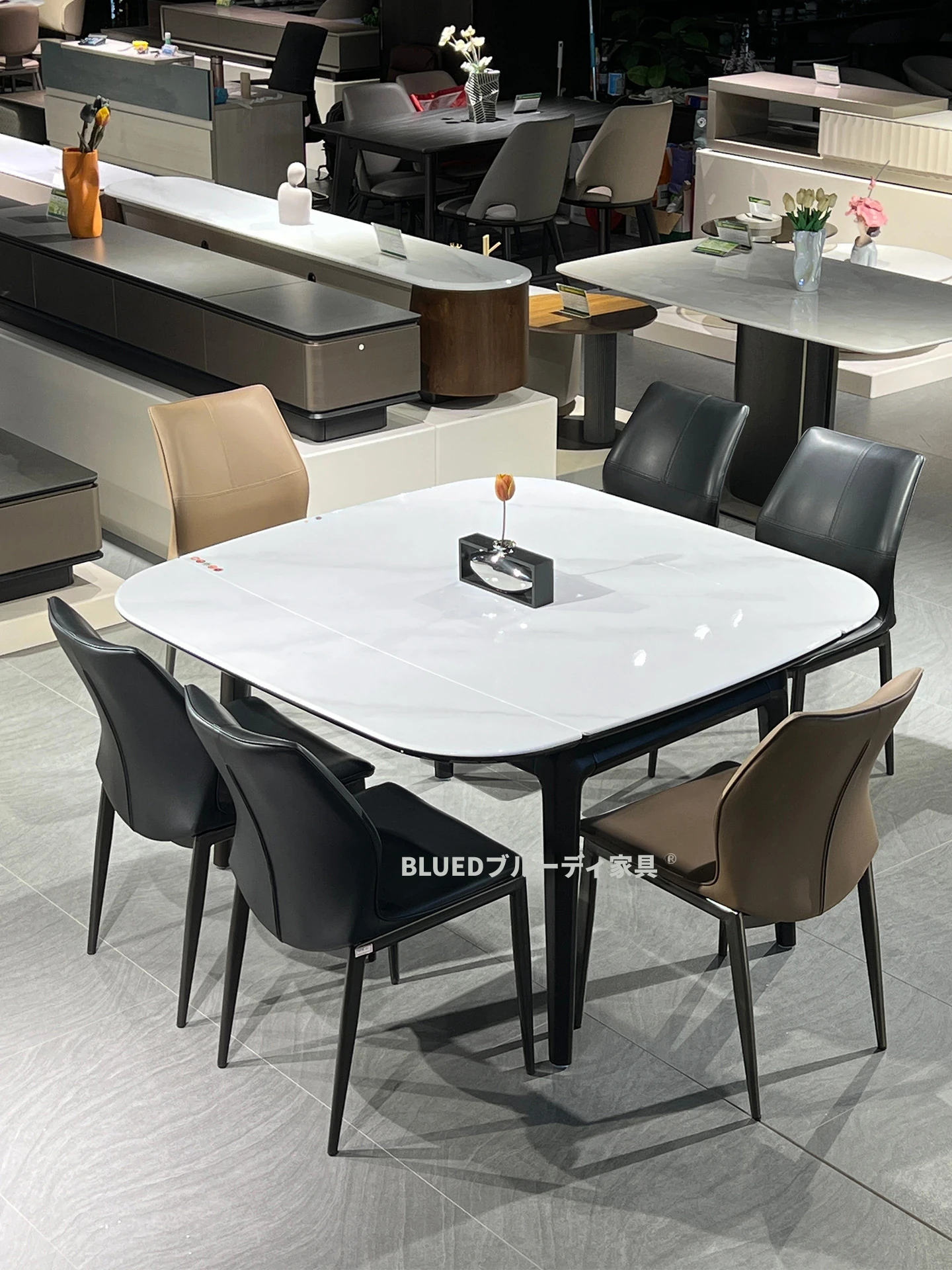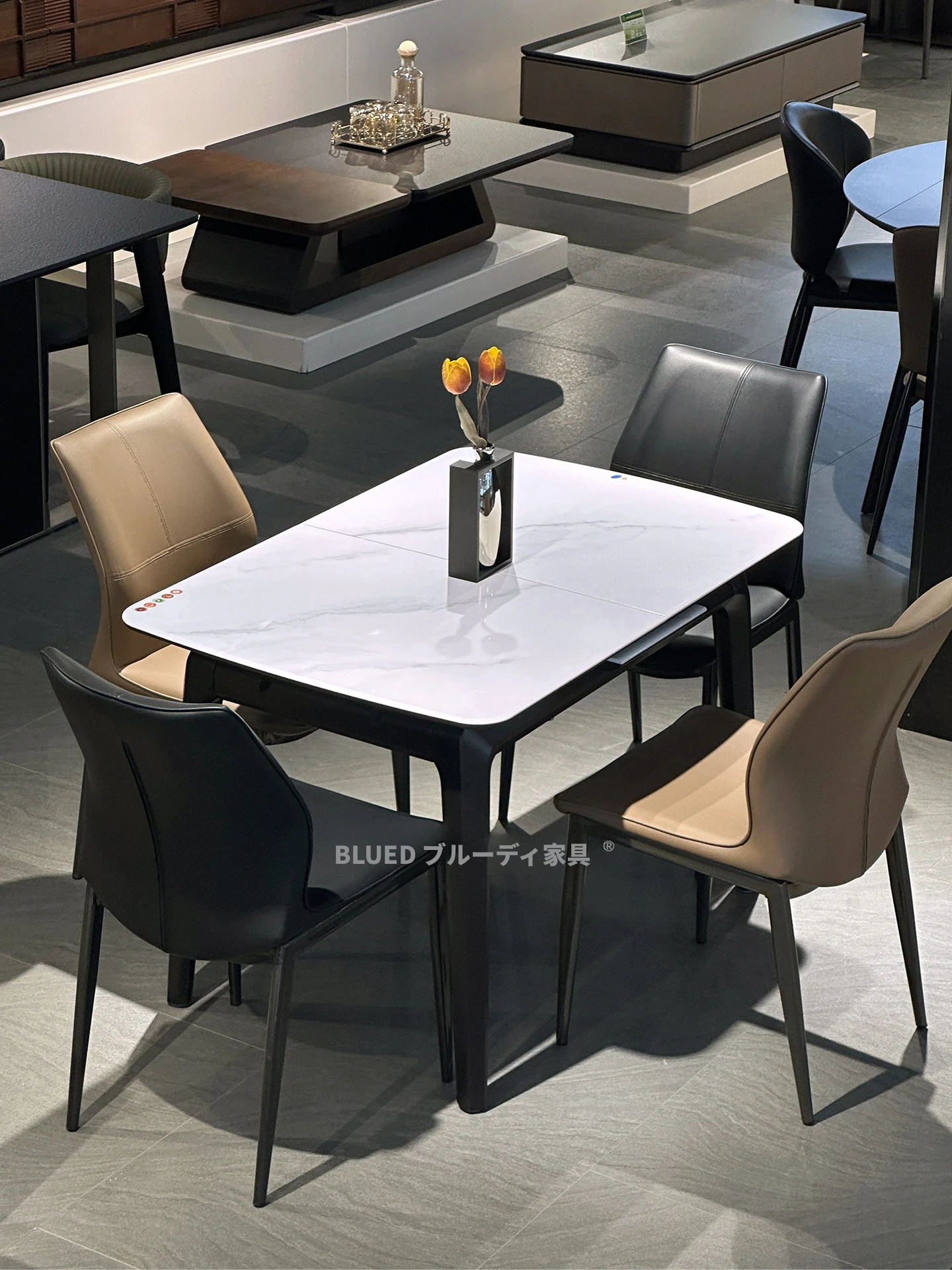 ブルーディー長方形岩板ダイニングテーブルセット - 1mから1.6mまで、4人から6人用、高級感あふれるデザインで、優雅な食卓を演出。あなたの食事シーンを格上げします!