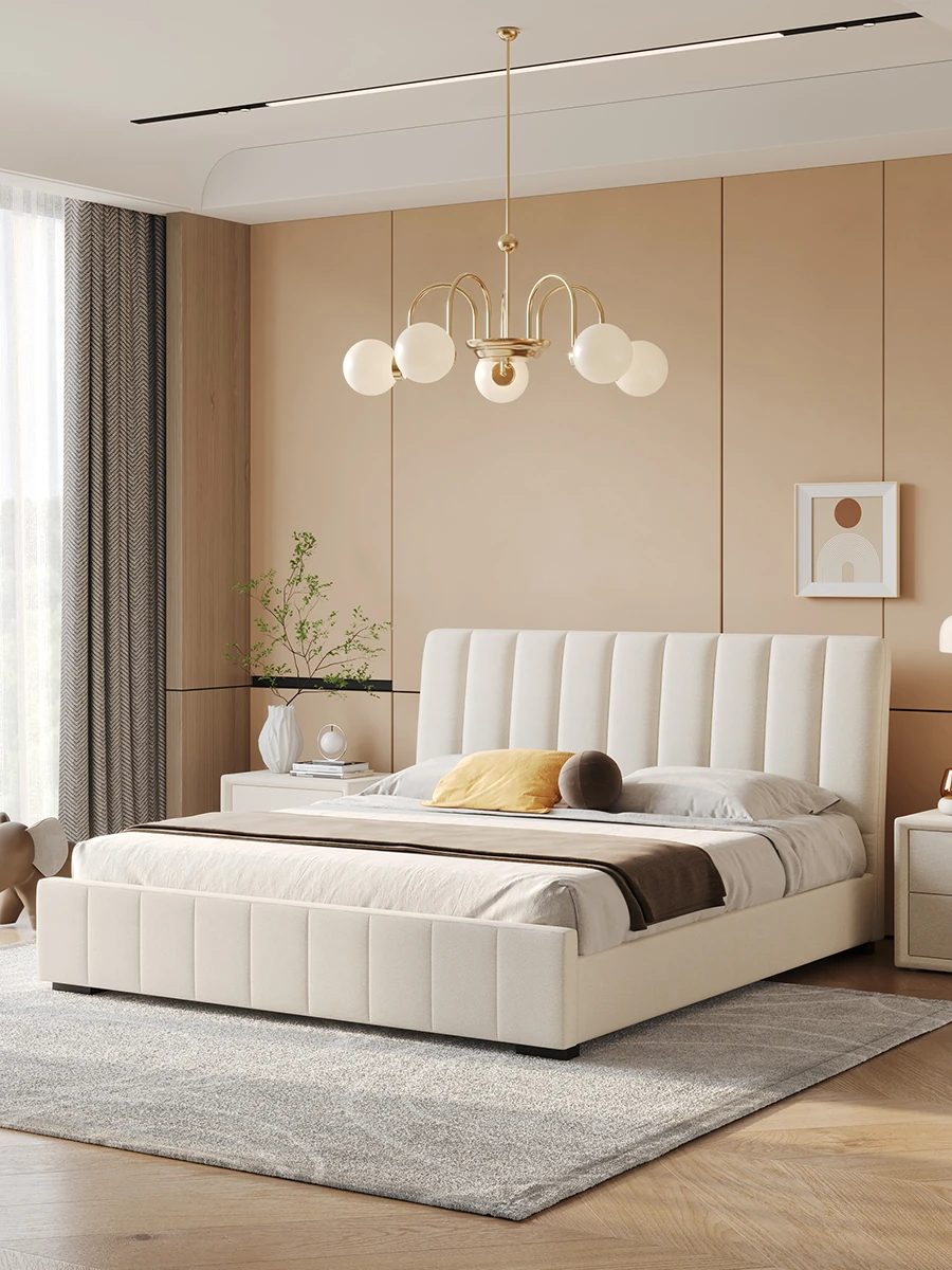 ラグジュアリー現代シンプル本革ベッド!人気の雲朵ソフトパッキング付き、主寝室にぴったりのダブルベッド!2メートルサイズ、2025年新作の結婚用マスターベッドで、快適な眠りをお約束します!