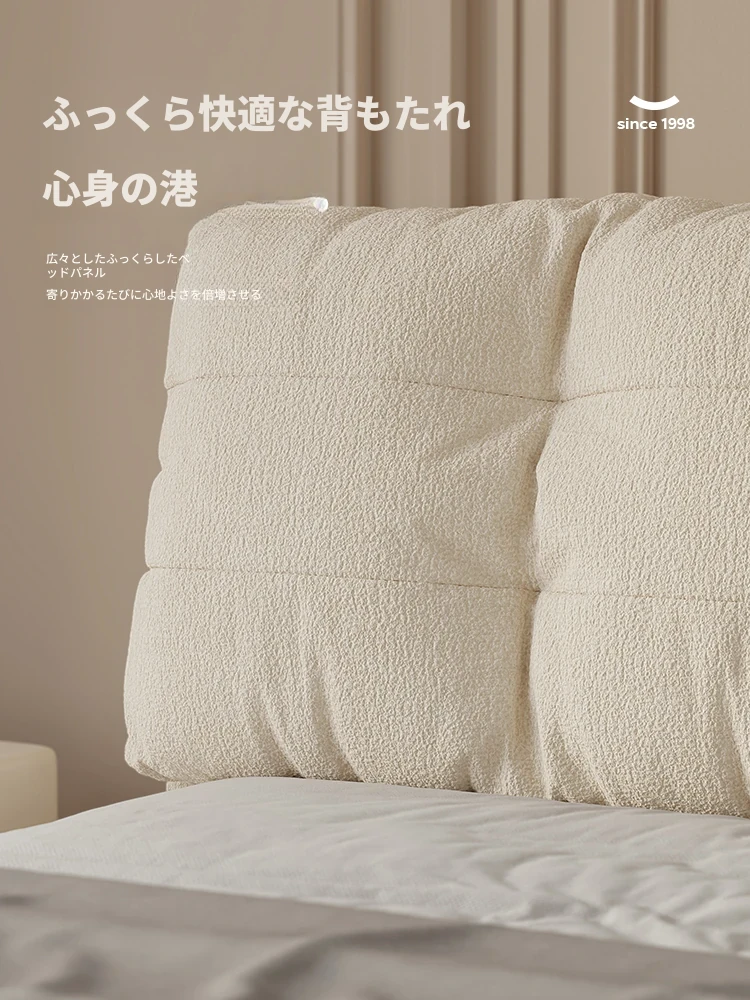 ラウンド豆腐ブロック布製ベッド|シンプルでモダンなデザイン|主寝室に最適なダブルベッド|猫の爪とぎにも対応|収納機能付きソフトパッケージベッドフレーム