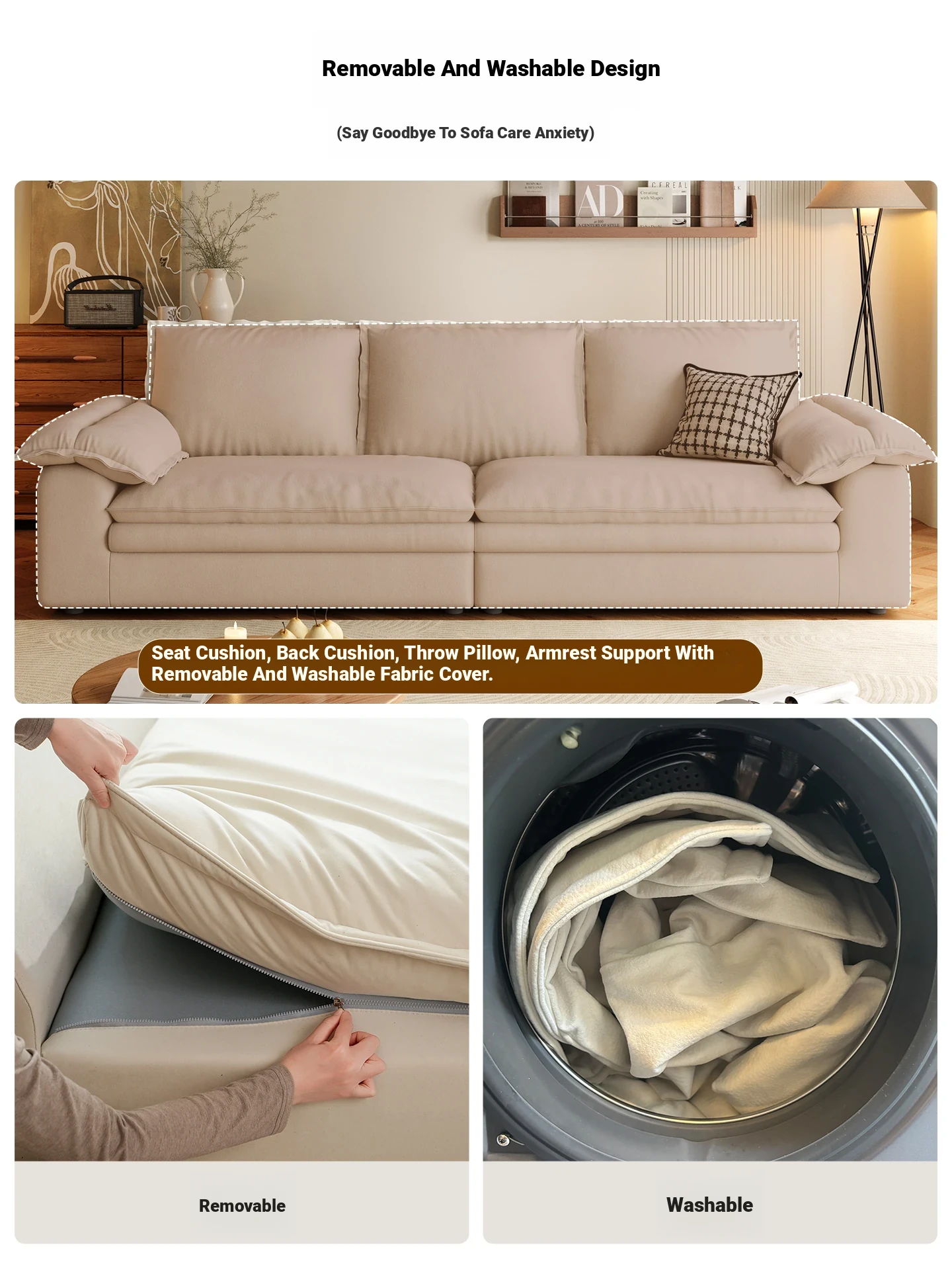 Lando Cloud Sailboat Fabric Sofa for Small Spaces - Removable and Washable, Vintage Cream Style, 2025 New Arrival, Cat Scratch Resistant