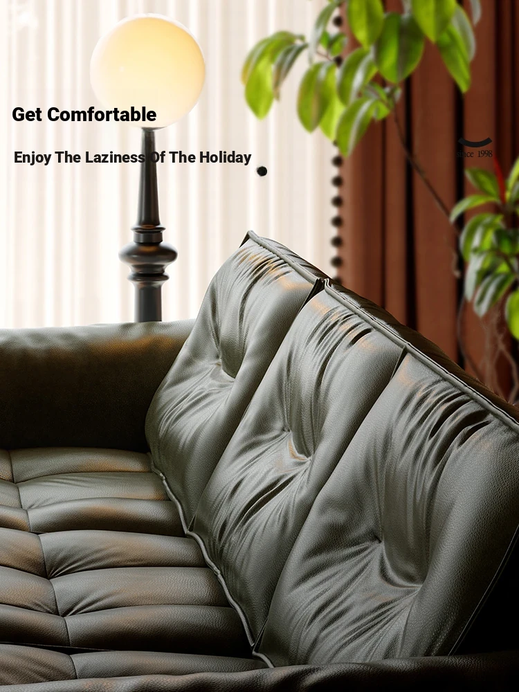 Languo Leather Sofa - Vintage Black Genuine Leather Block Design for Small Living Rooms, Featuring Top-Grain Cowhide in a Modern Style. Perfect for Cozy Spaces!