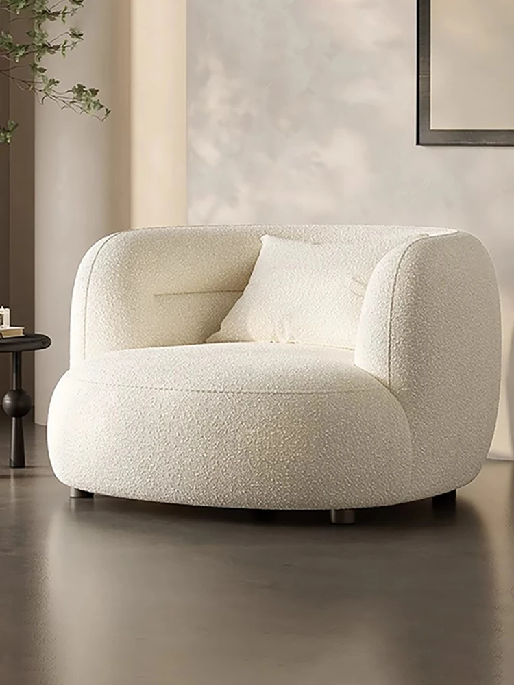Creamy Single Sofa Chair - Designer Lazy Chair for Living Room and Balcony, Egg-shaped Relaxation Chair, Rotating Armchair for Bedroom Leisure. Perfect for Comfort and Style!