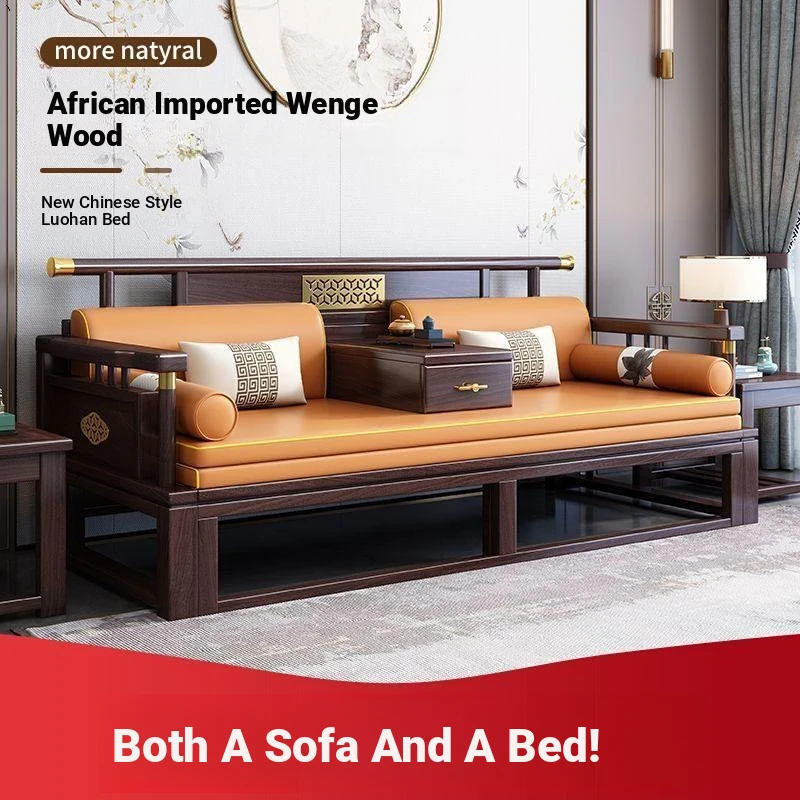 Modern Chinese-style Solid Wood Luohan Bed - Fully Wooden Pull-out Bed for Living Room, Versatile and Expandable Wenge Sofa Bed - Perfect for Contemporary Spaces