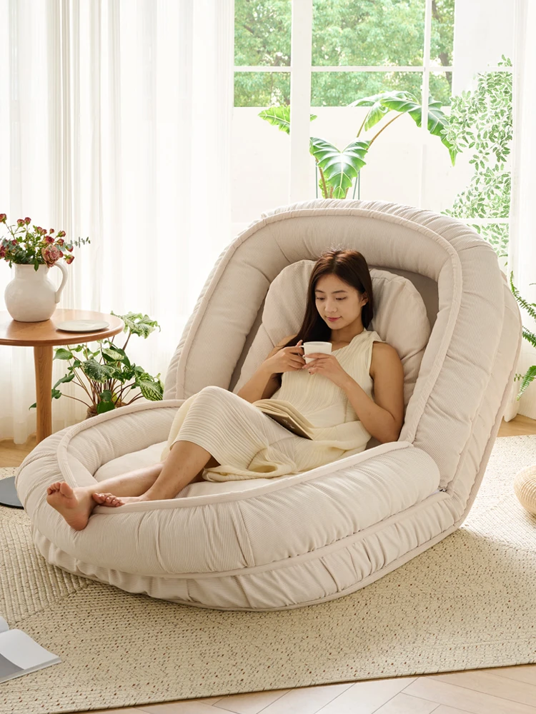 Cozy Human Dog Bed Sofa Chair - Versatile Lounge Chair for Bedroom and Balcony, Easy to Fold and Sleep, Creamy Style Tatami Single Sofa for Ultimate Relaxation