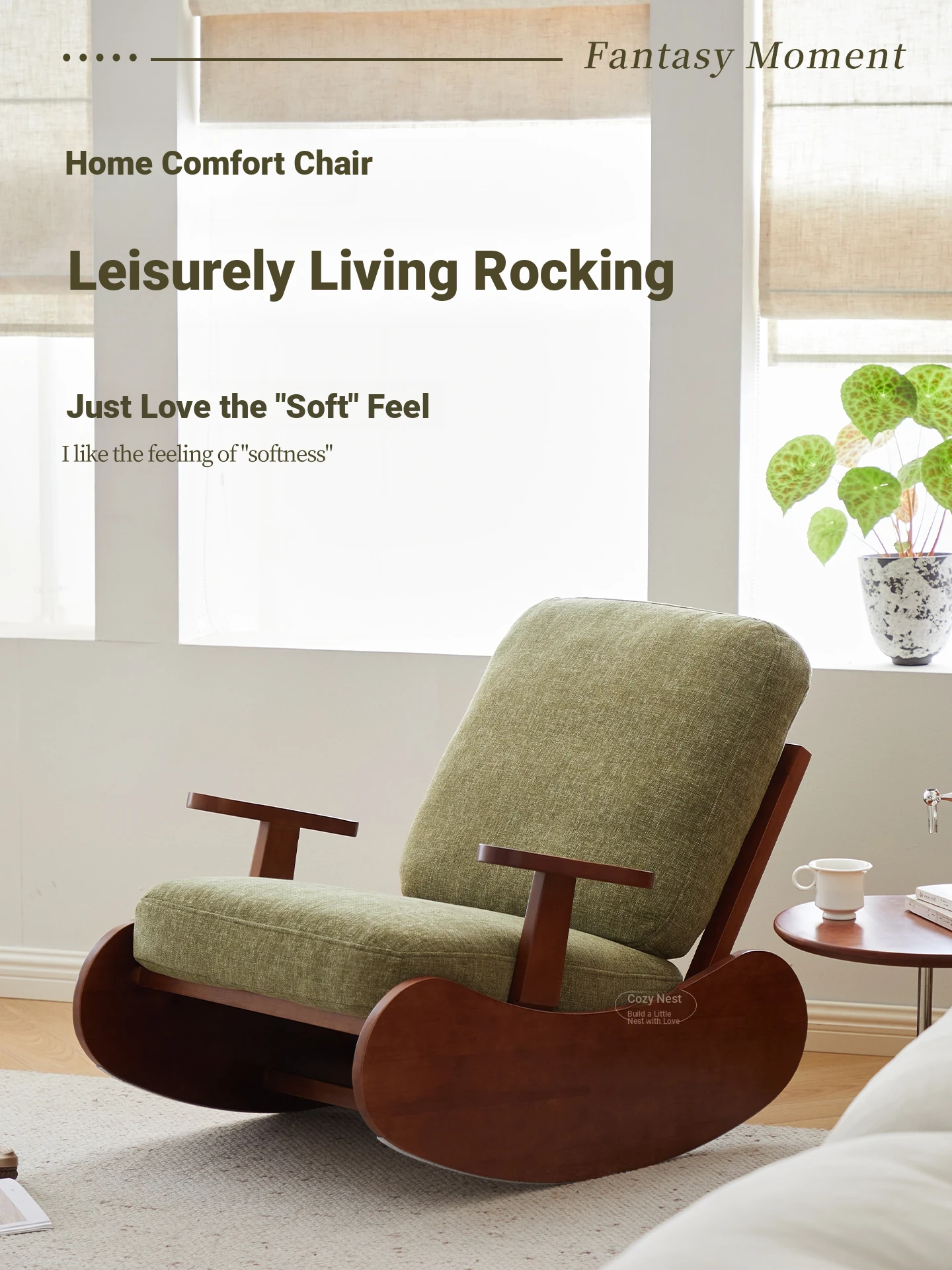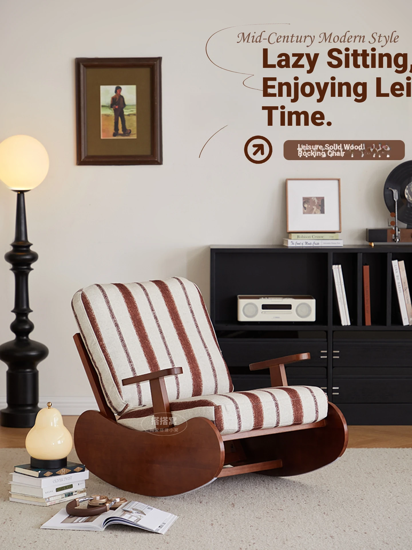 Vintage Solid Wood Rocking Chair – Reclining Lazy Sofa for Small Spaces, Perfect for Living Rooms and Balconies, Removable and Washable Cover for Easy Maintenance