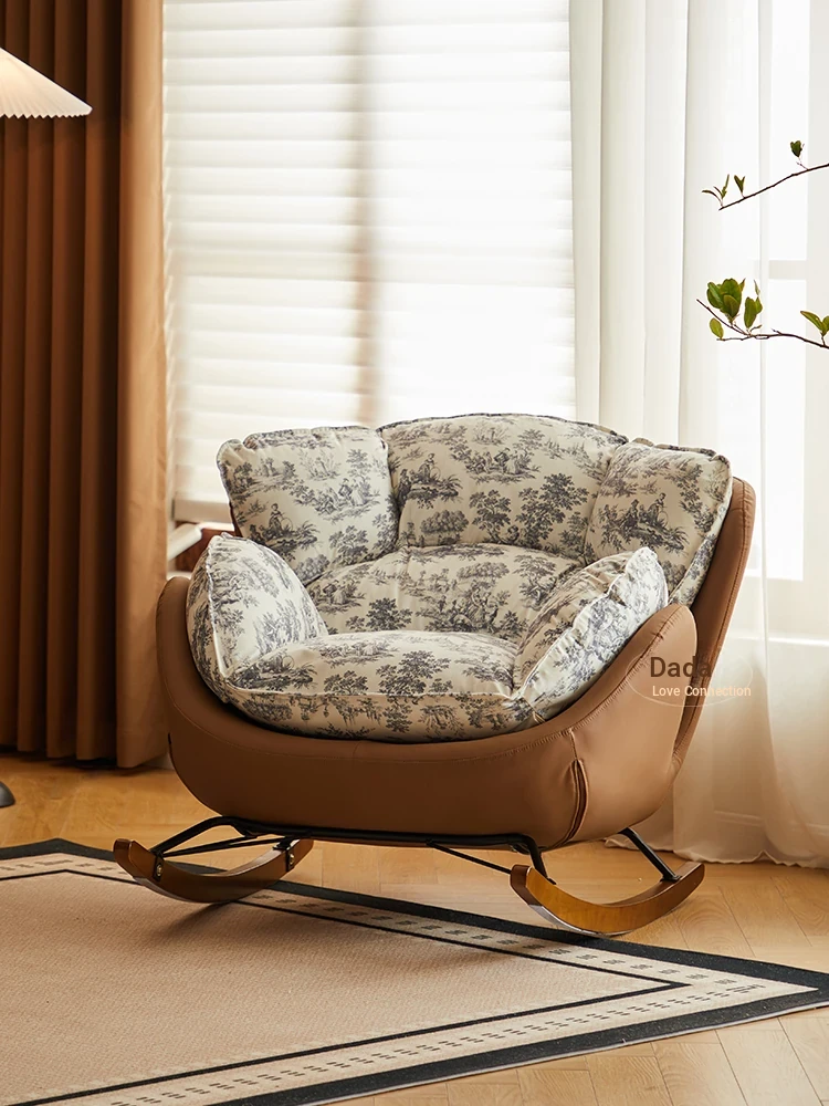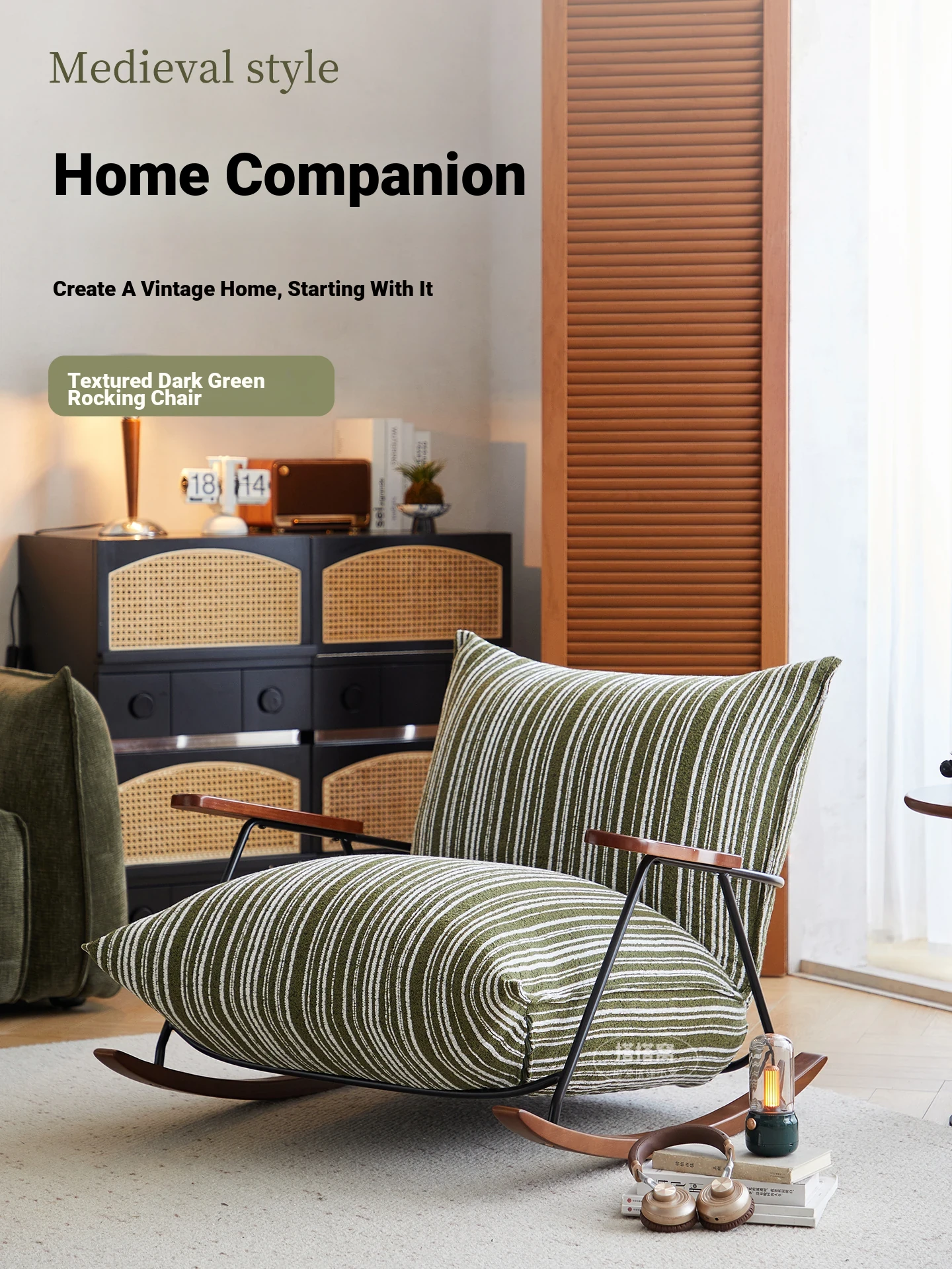 Italian Luxury Lazy Sofa Chair - Vintage Ink Wash Rocking Chair for Living Room, Ideal for Winter Balcony Relaxation, Made of Comfortable Cotton-Linen Fabric, Perfect for Cozy Spaces.
