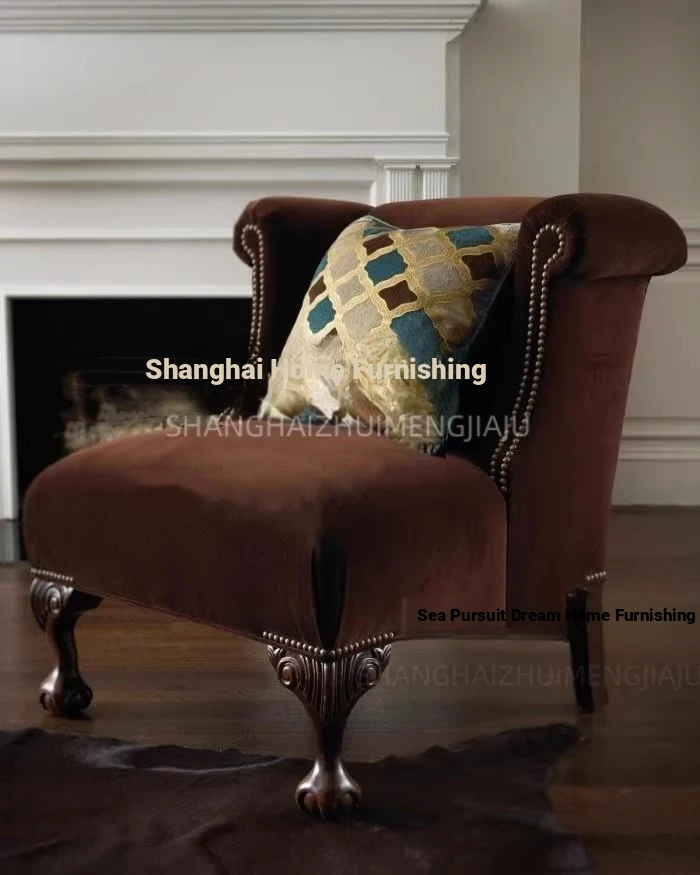 Vintage Style Deep Brown Upholstered French Single Chair - Perfect for Living Room, Study, or Balcony. A Designer's Touch for American-Style Leisure and Comfort.