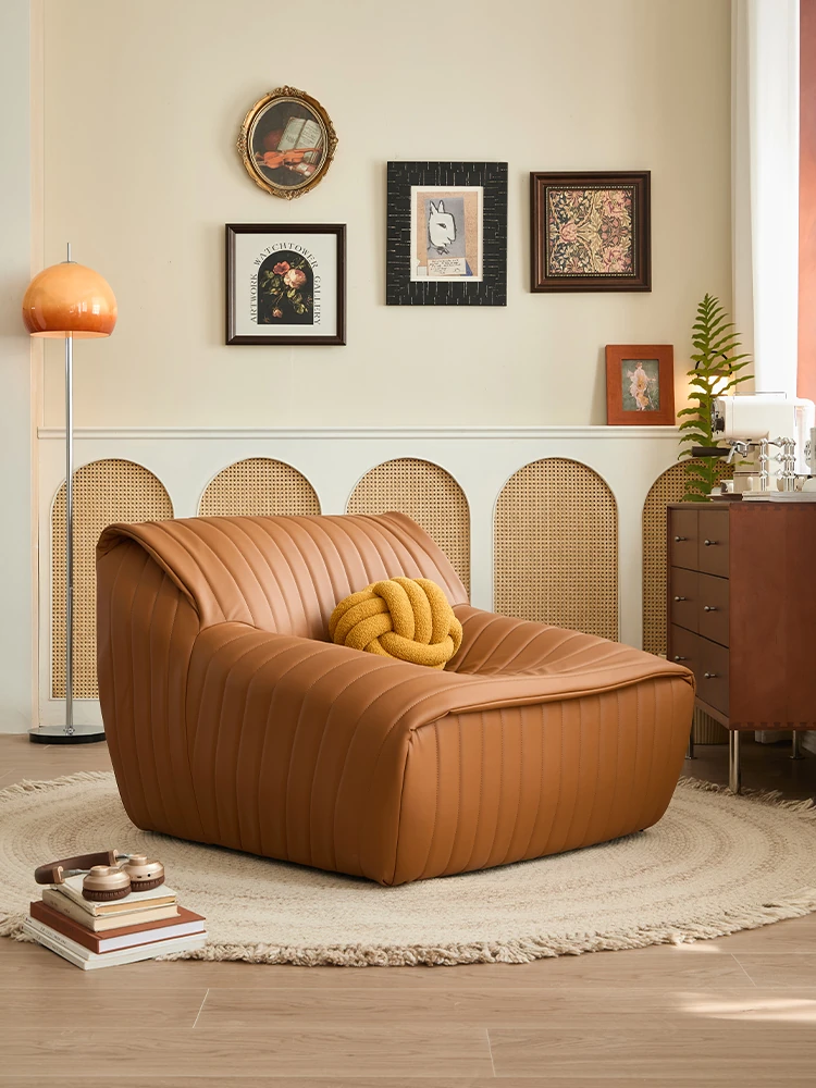 Genuine Leather Lazy Sofa for Small Spaces - Vintage Chunky Caterpillar Armchair for Living Room and Bedroom, Perfect for Relaxation and Style