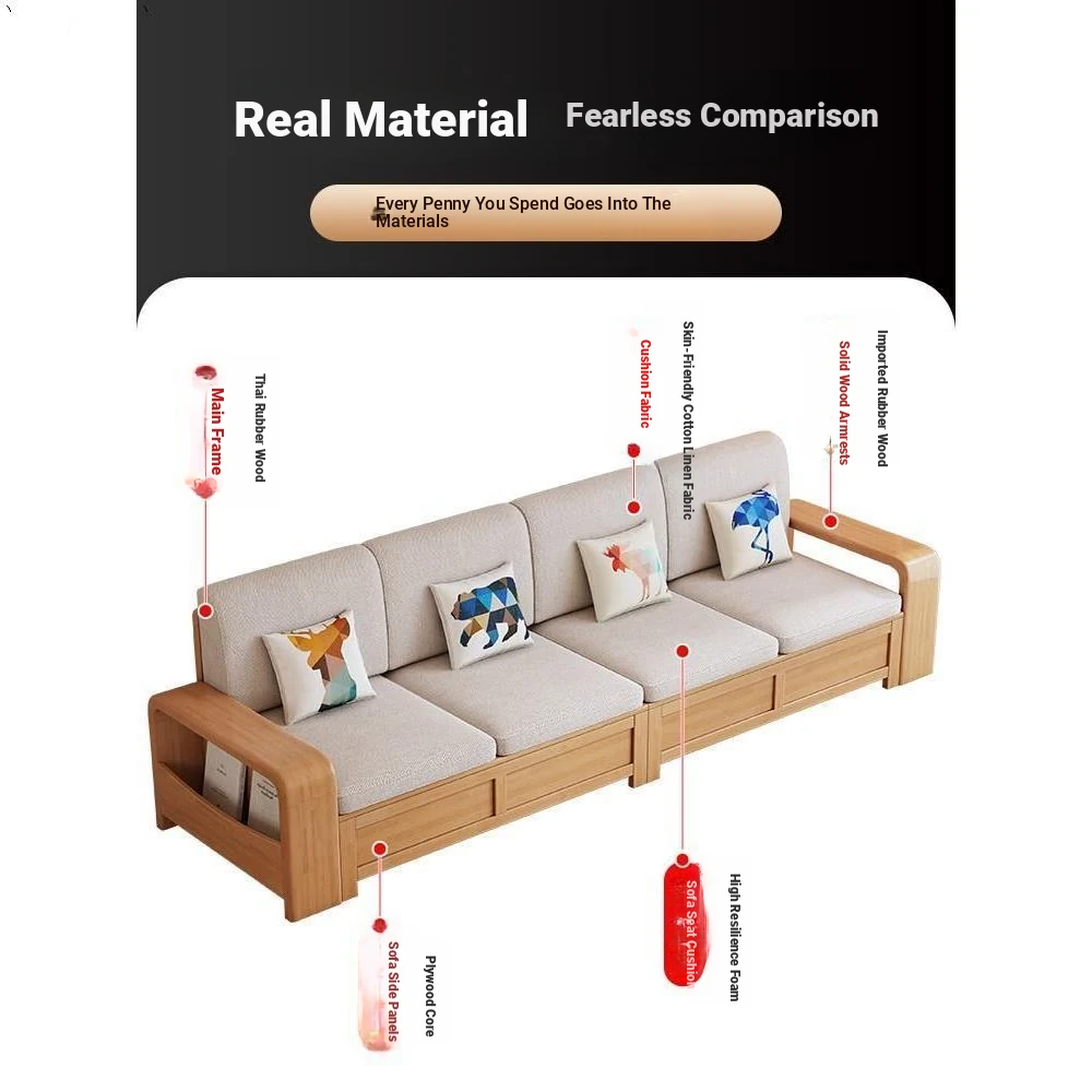 Modern Minimalist Solid Wood Sofa Set for Small Living Rooms - New Chinese Style, Natural Wood Color, High-Storage Design, Perfect for Home Use