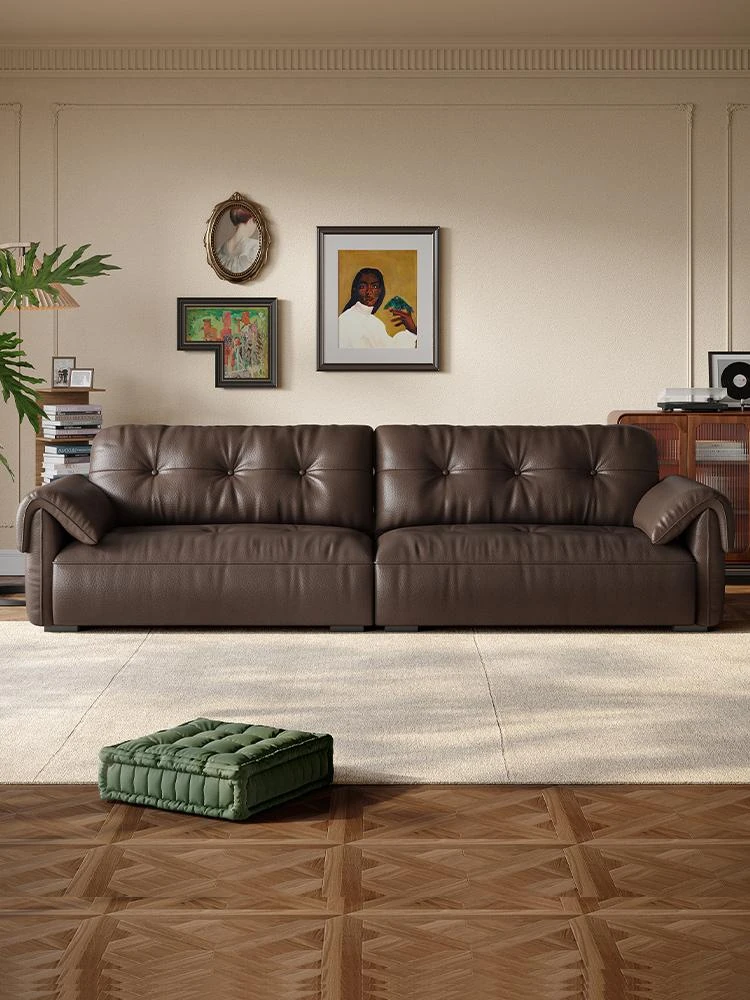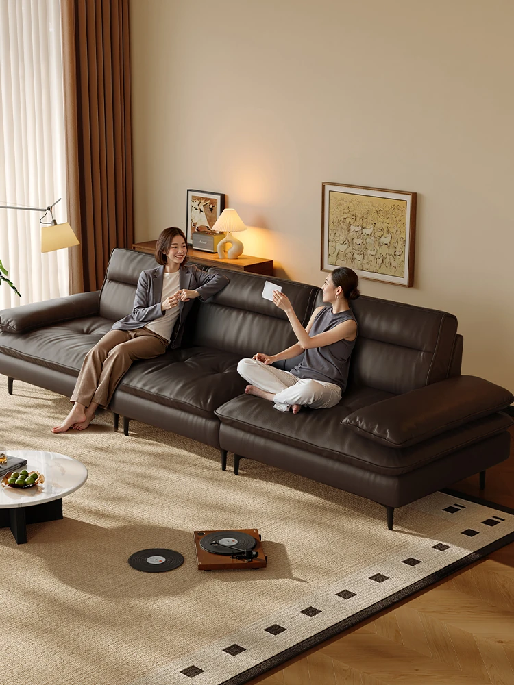 Lando Home Italian Minimalist Genuine Leather Sofa - Premium Top Grain Dark Brown Vintage Design with Floor-Length Elephant Ears