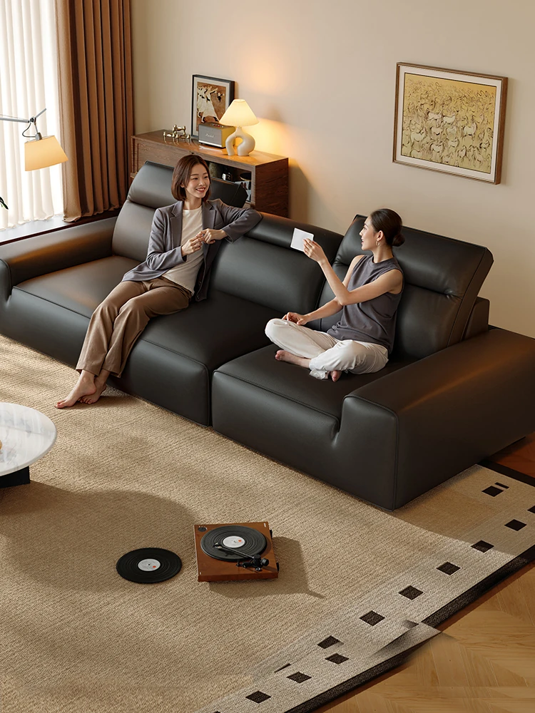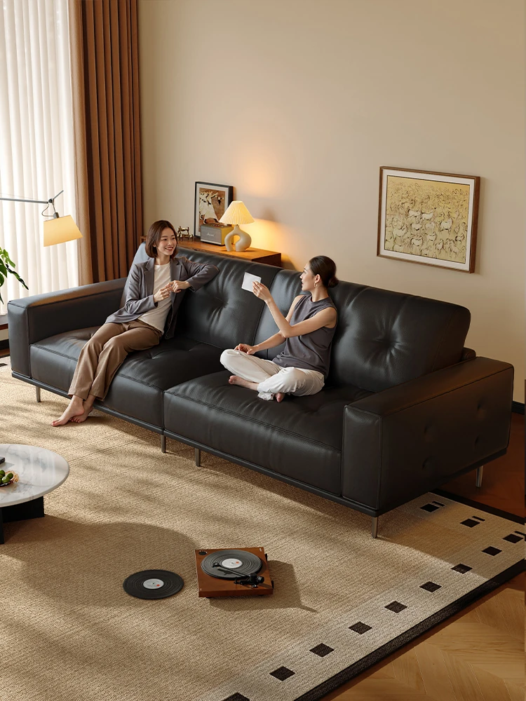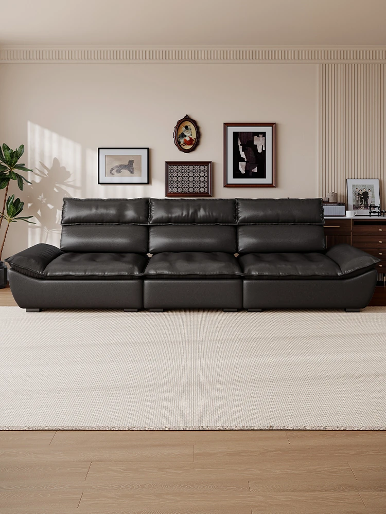 Laurence Genuine Leather Sofa - Modern Minimalist Vintage Style for Living Room, 2025 New Arrival, Made with Premium Top-Grain Black Cowhide