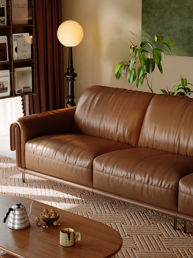 Lando Luxurious Genuine Leather Sofa - Stylish Mid-Century Modern Design for Your Living Room, 2025 New Arrival in Elegant Brown with Elevated Legs