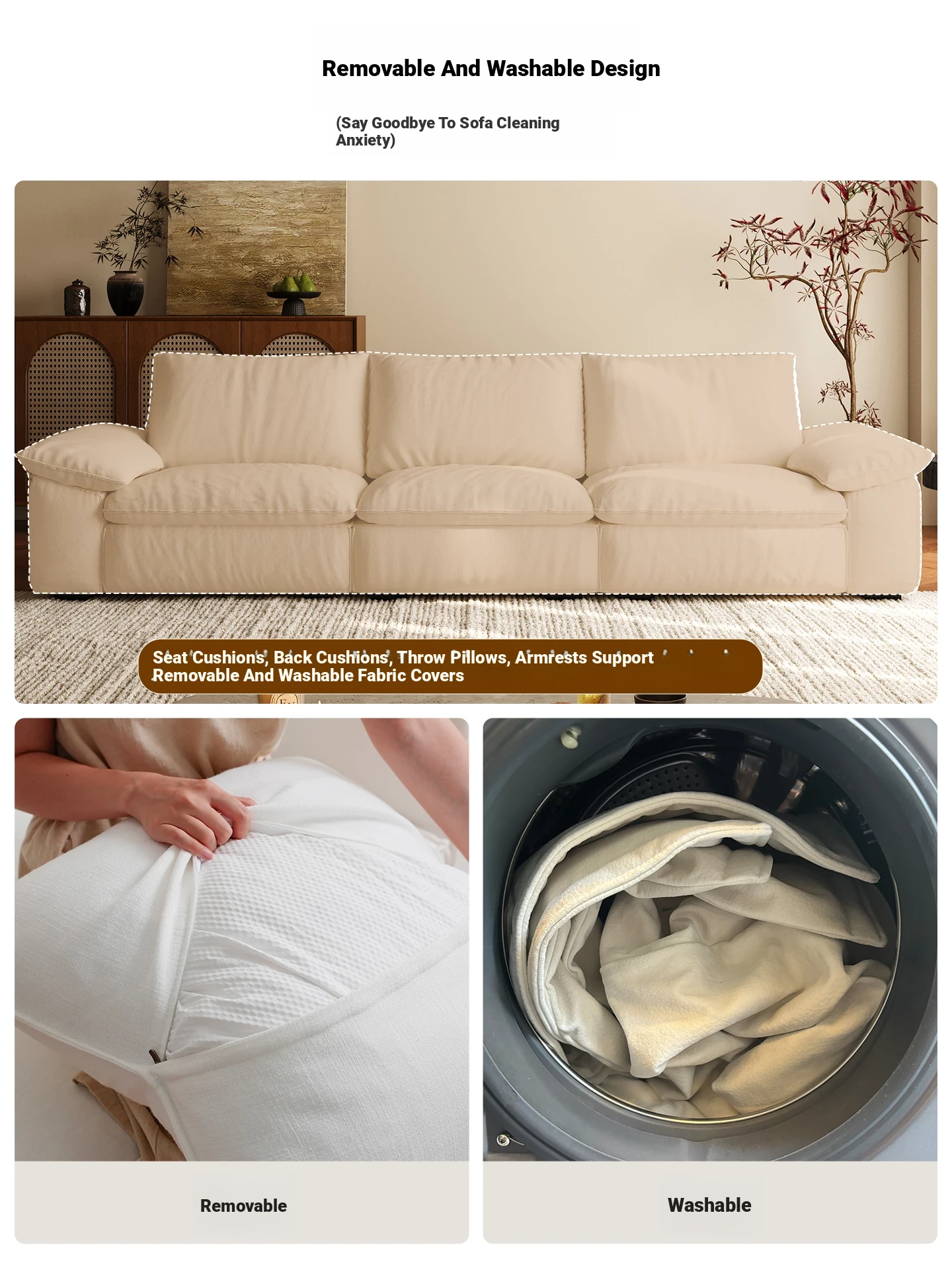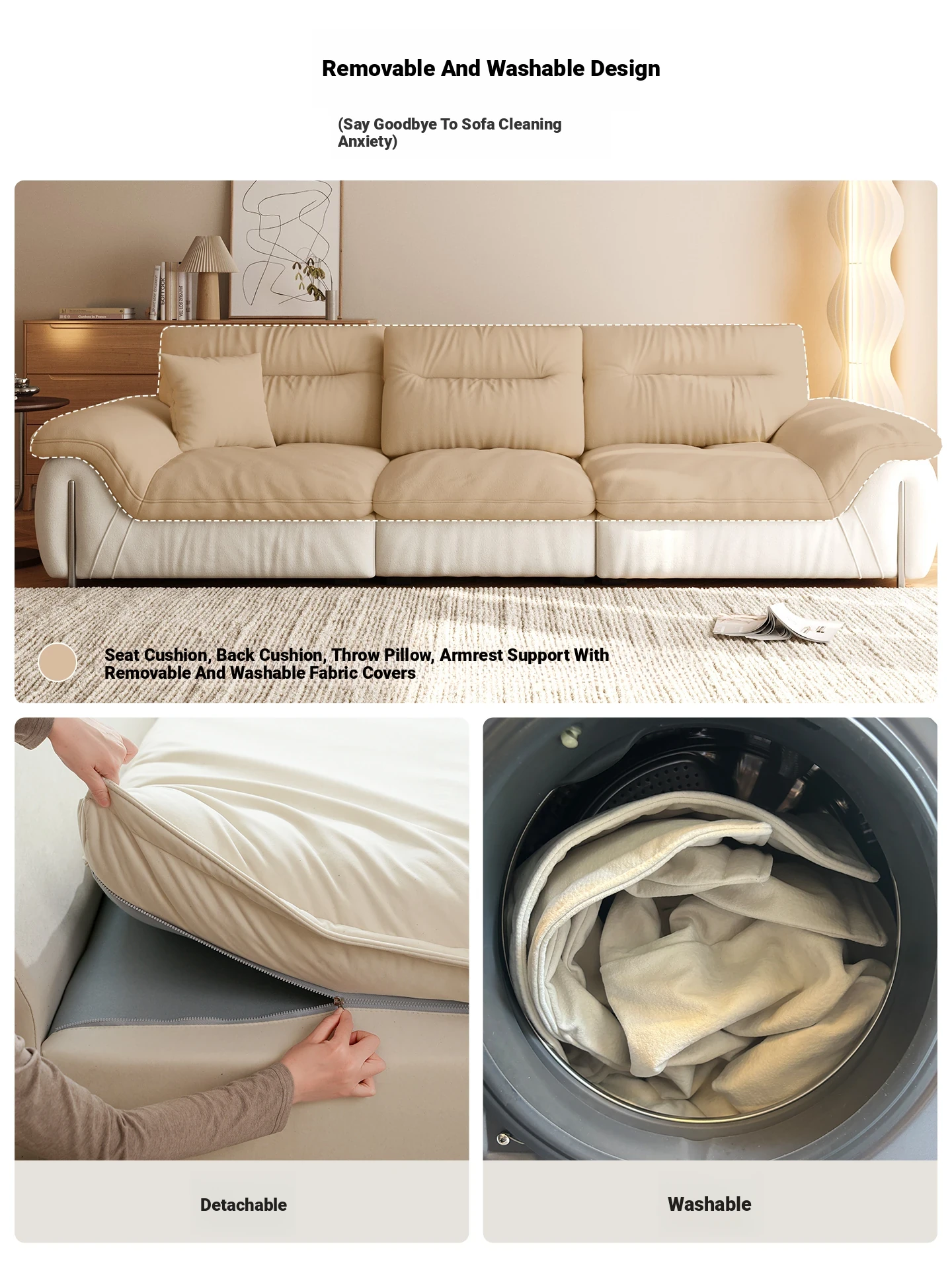 Lando Creamy Chenille Fabric Sofa with Cushions - Stylish Straight Sofa for Small Living Rooms, 2025 New Arrival