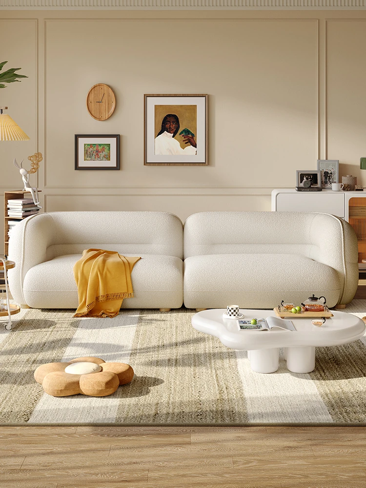 2025 New French Cream Style Chenille Block Sofa for Small Spaces - Elegant and Cozy Living Room Furniture for a Luxurious Touch