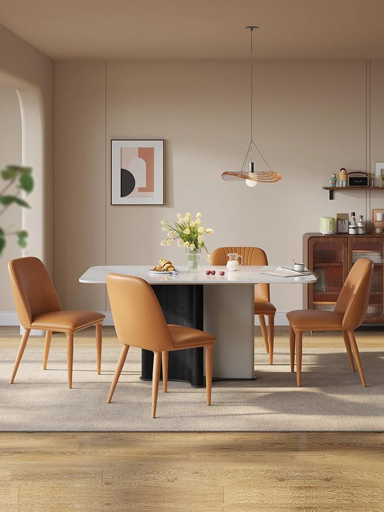 Modern Minimalist Italian-Style Rock Slab Dining Table and Chair Set - Chic and Luxurious Furniture for Small Spaces, Perfect for Artists and Contemporary Homes.