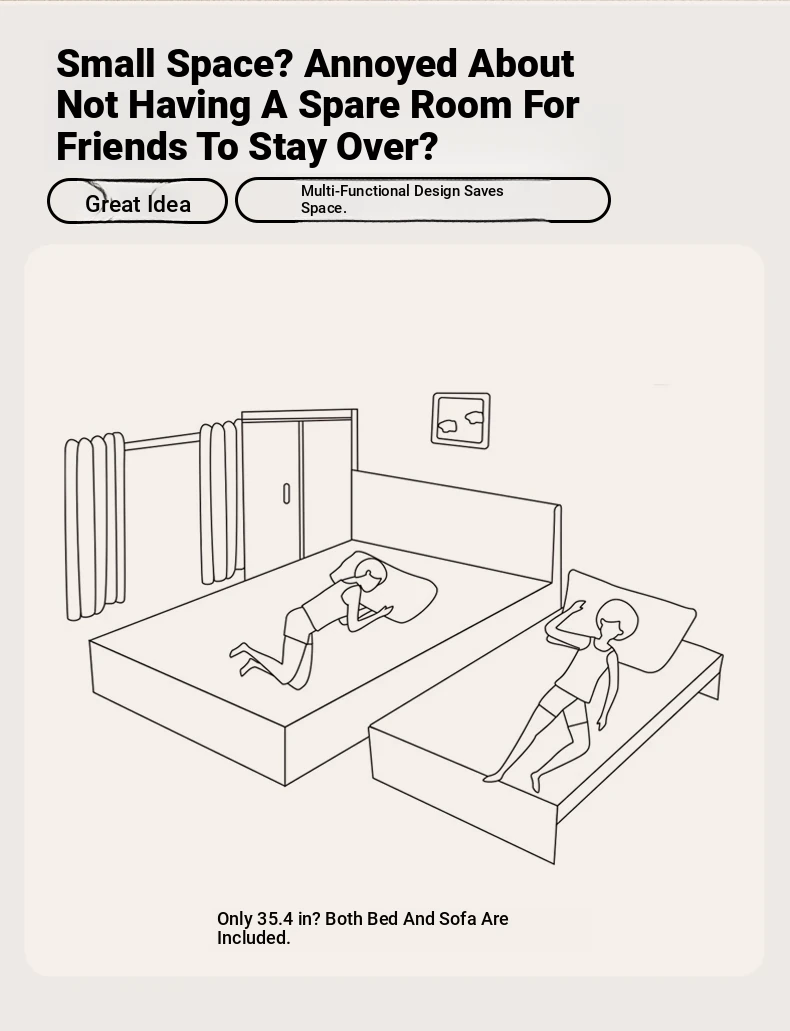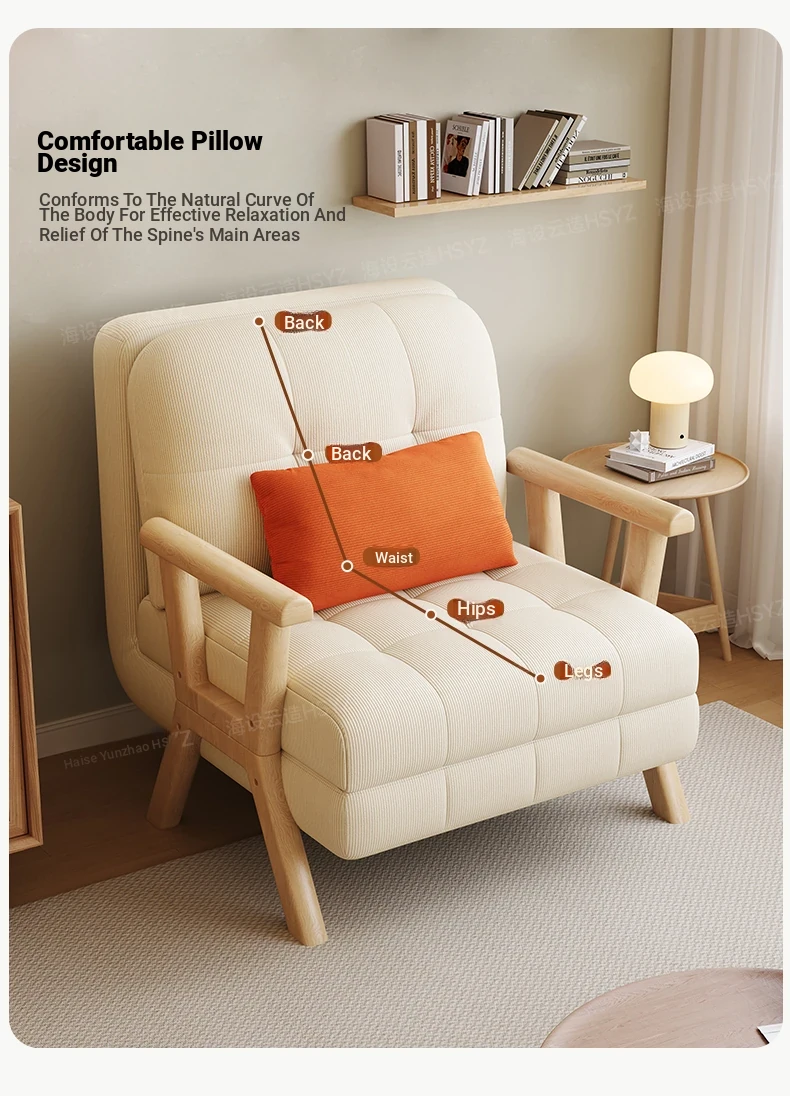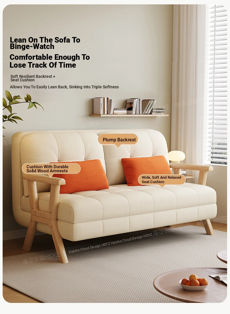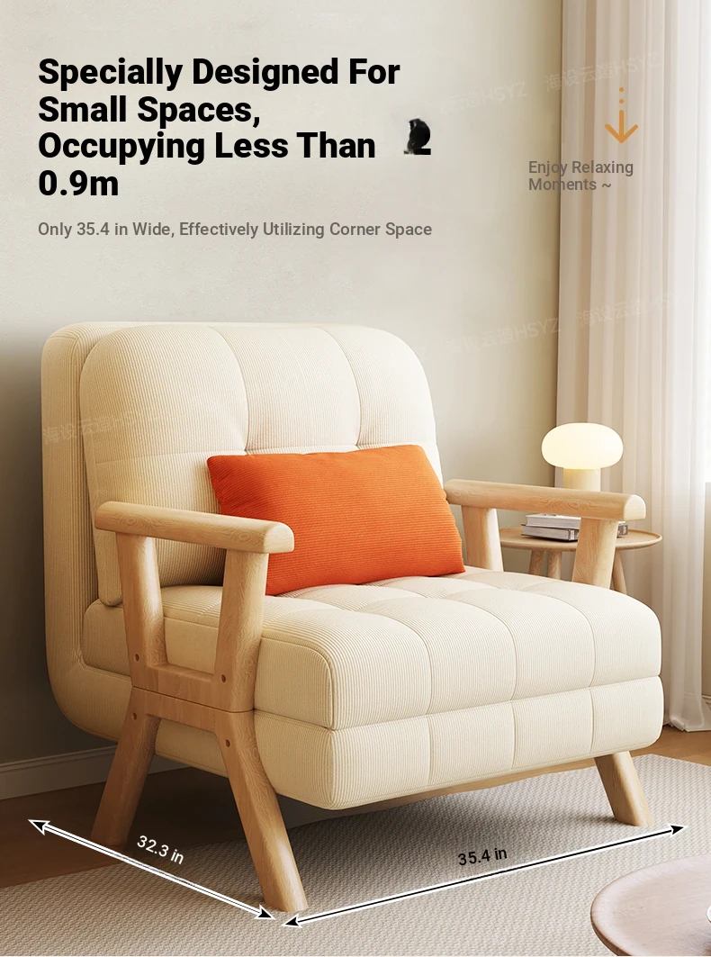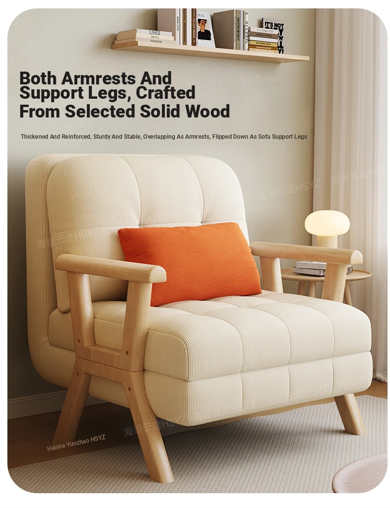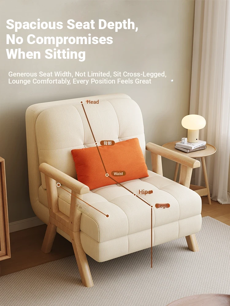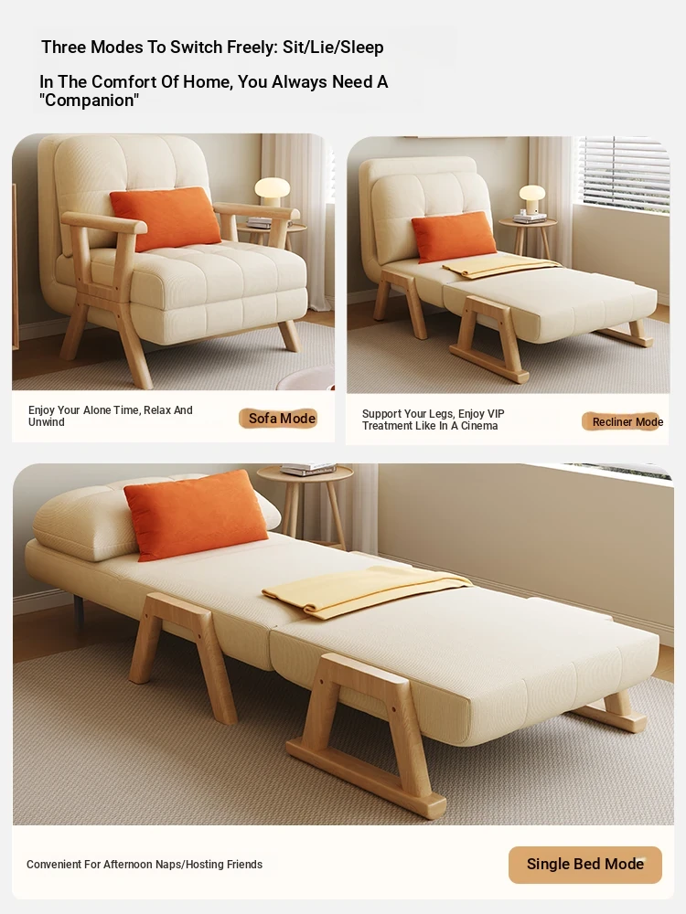 2025 New Compact Sofa Bed - Versatile Foldable Design for Small Spaces, Made of Solid Wood, Perfect for Living Room or Study, Accommodates Both Single and Double Use