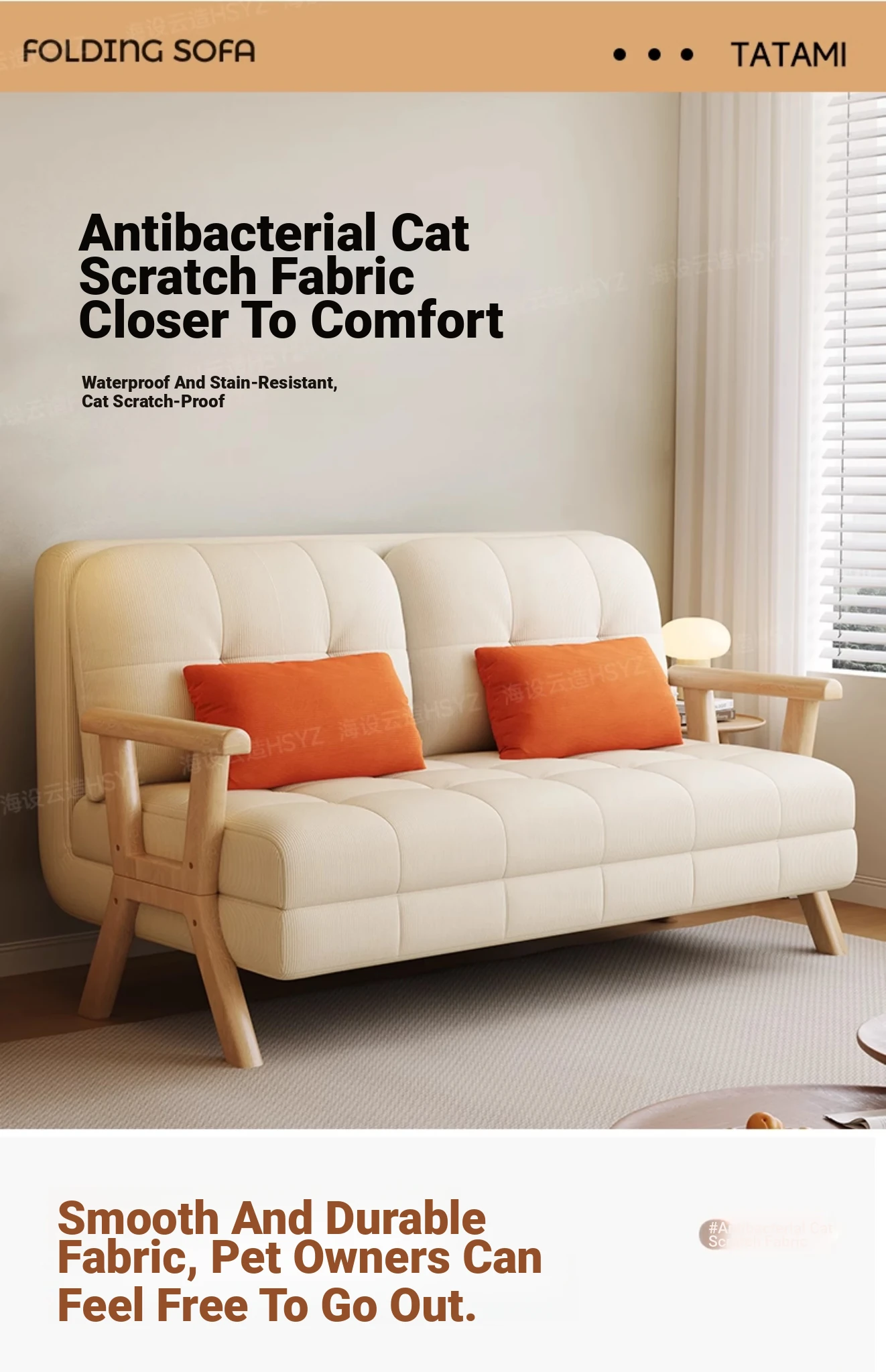 35.43 in straight row towing bed. [six anti-cat claw Cloth & Comfortable cotton linen cloth & breathable corduroy three fabrics available]]