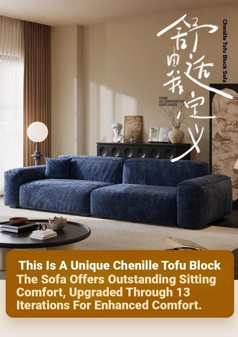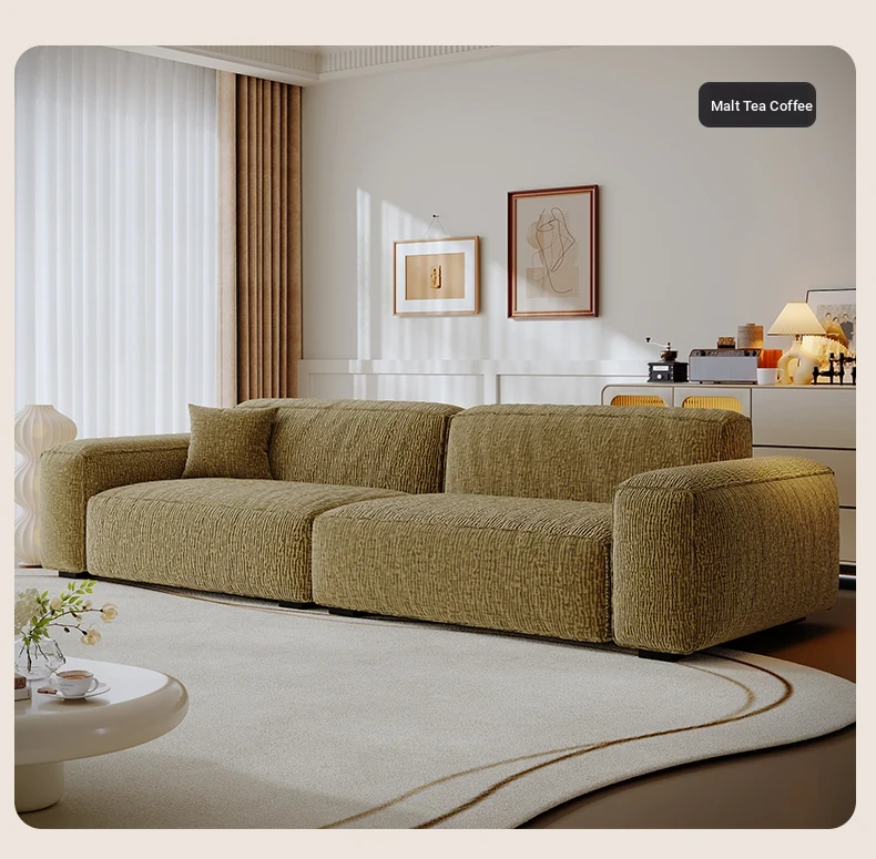 2025 New French Cream Style Chenille Block Sofa for Small Spaces - Elegant and Cozy Living Room Furniture for a Luxurious Touch