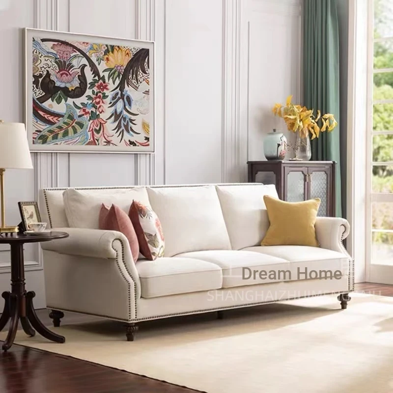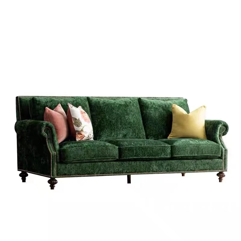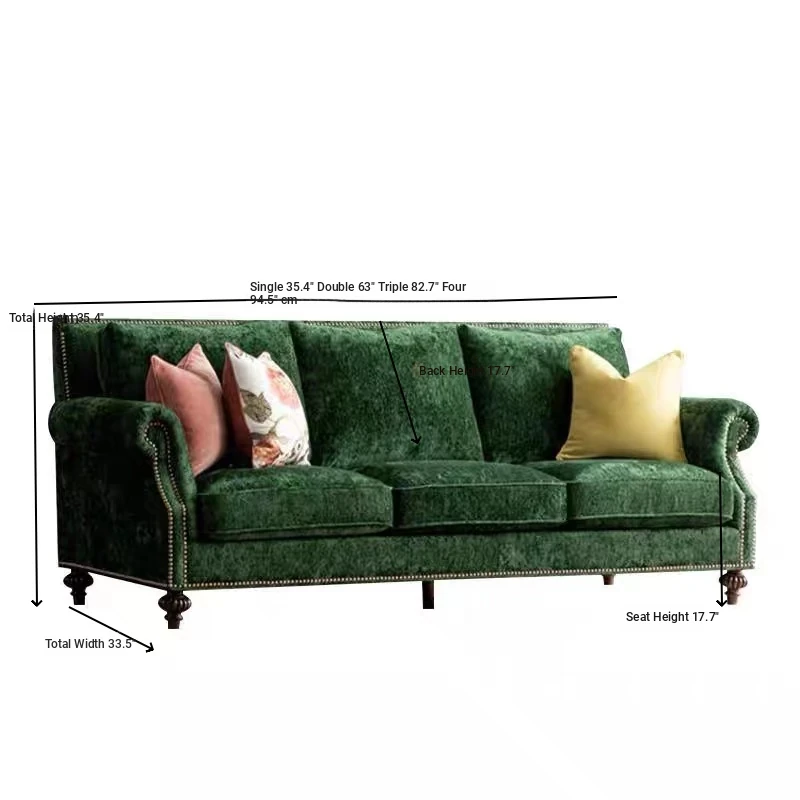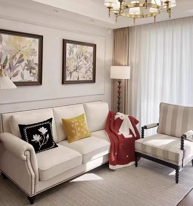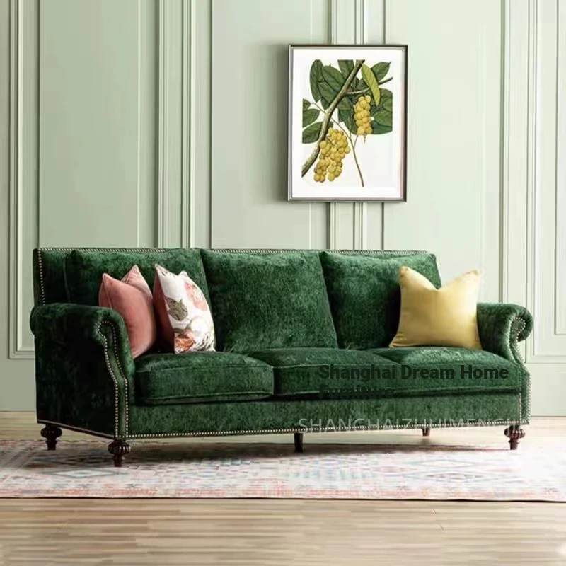 American Chenille Solid Wood High-Back Sofa for Villa Living Room - French Style Sample Room Furniture, Minimalist Fabric Design, Perfect for Elegant Interiors