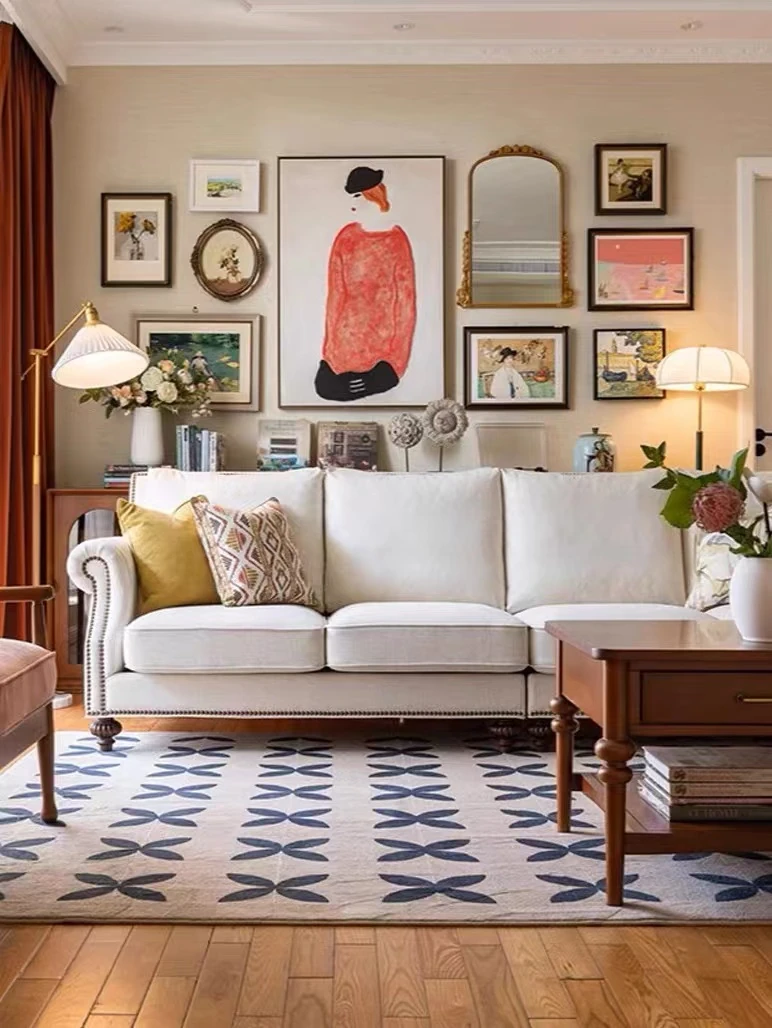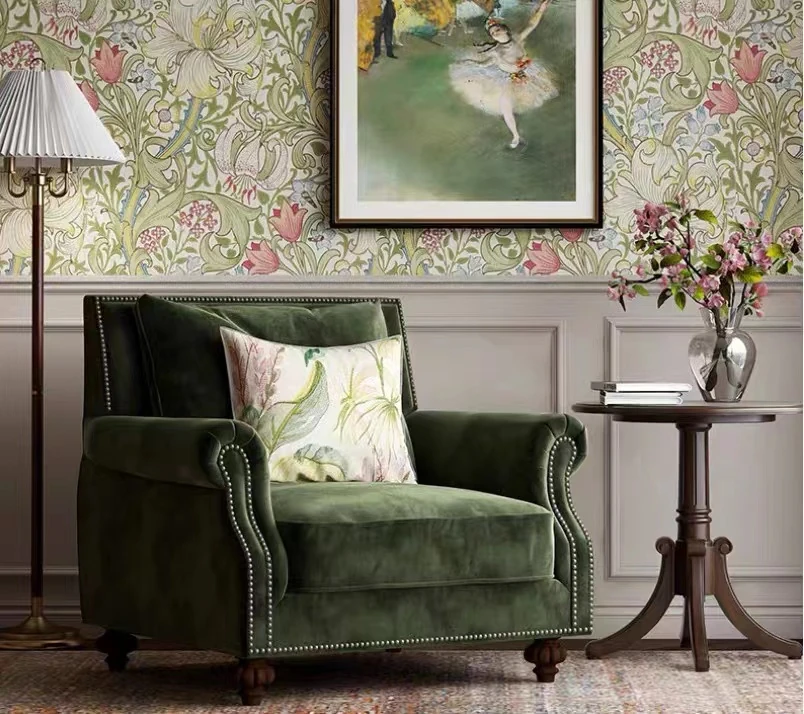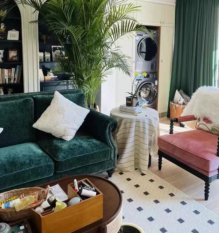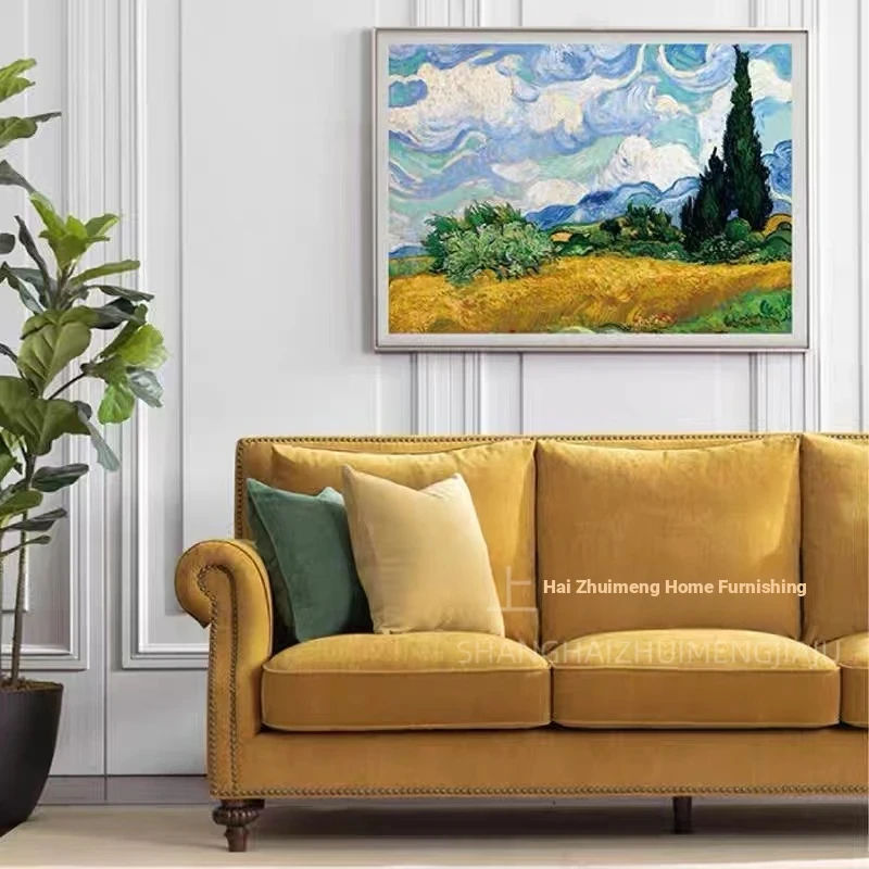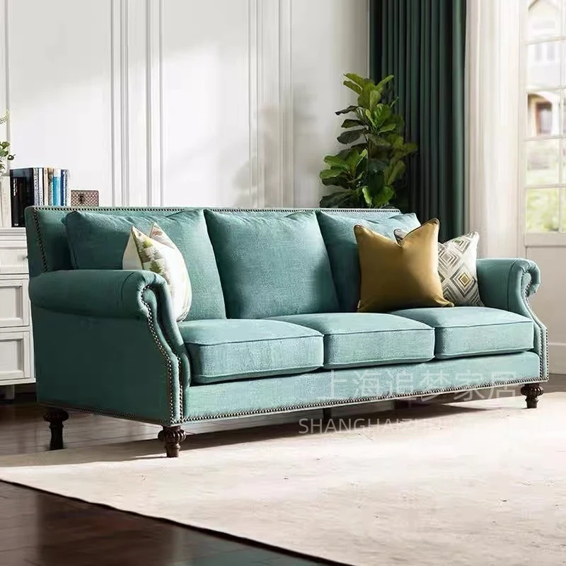 American Chenille Solid Wood High-Back Sofa for Villa Living Room - French Style Sample Room Furniture, Minimalist Fabric Design, Perfect for Elegant Interiors