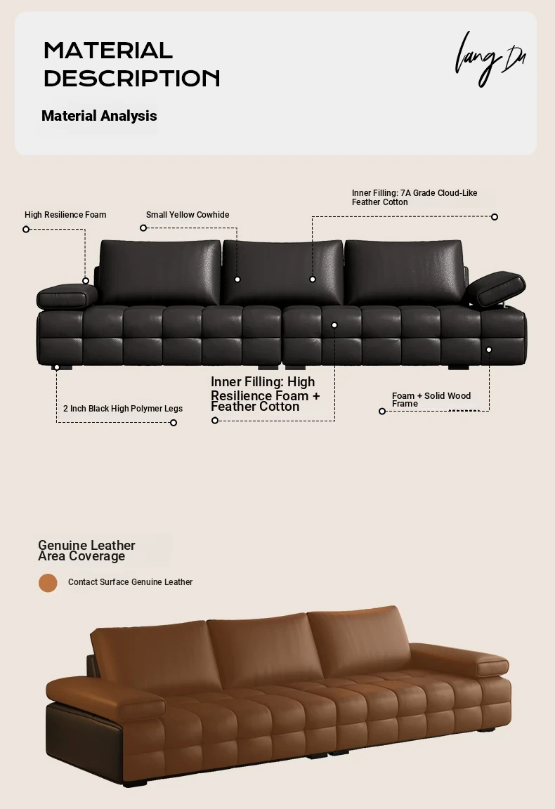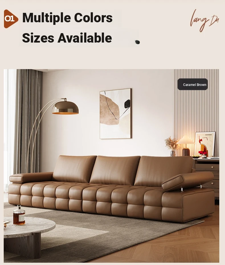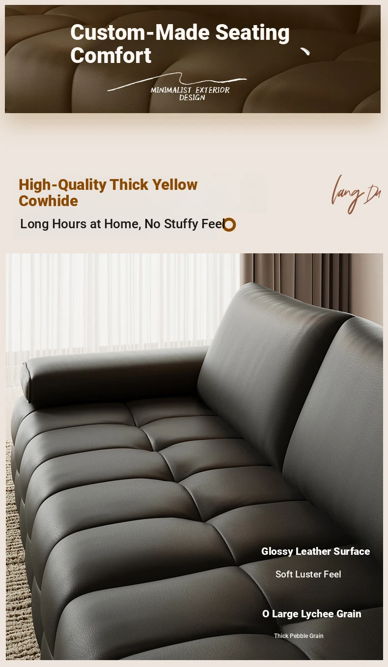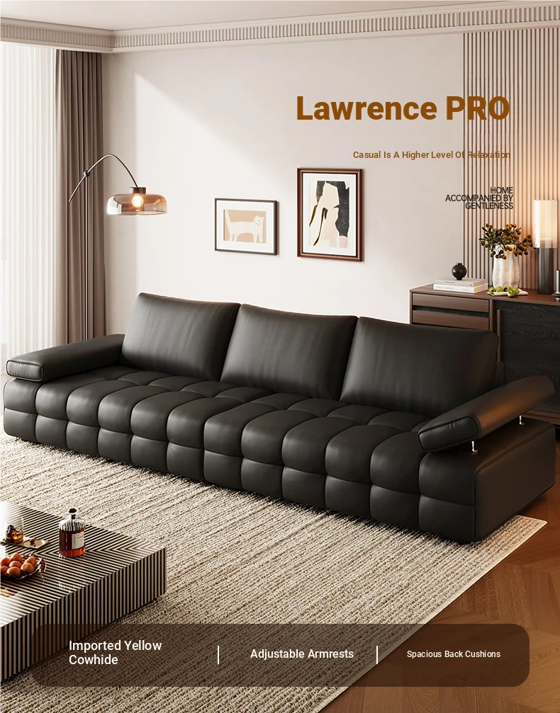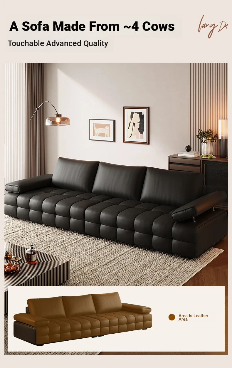 Bee Wish Society Luxury Lawrence Genuine Leather Sofa - Italian Style Wide Living Room Couch