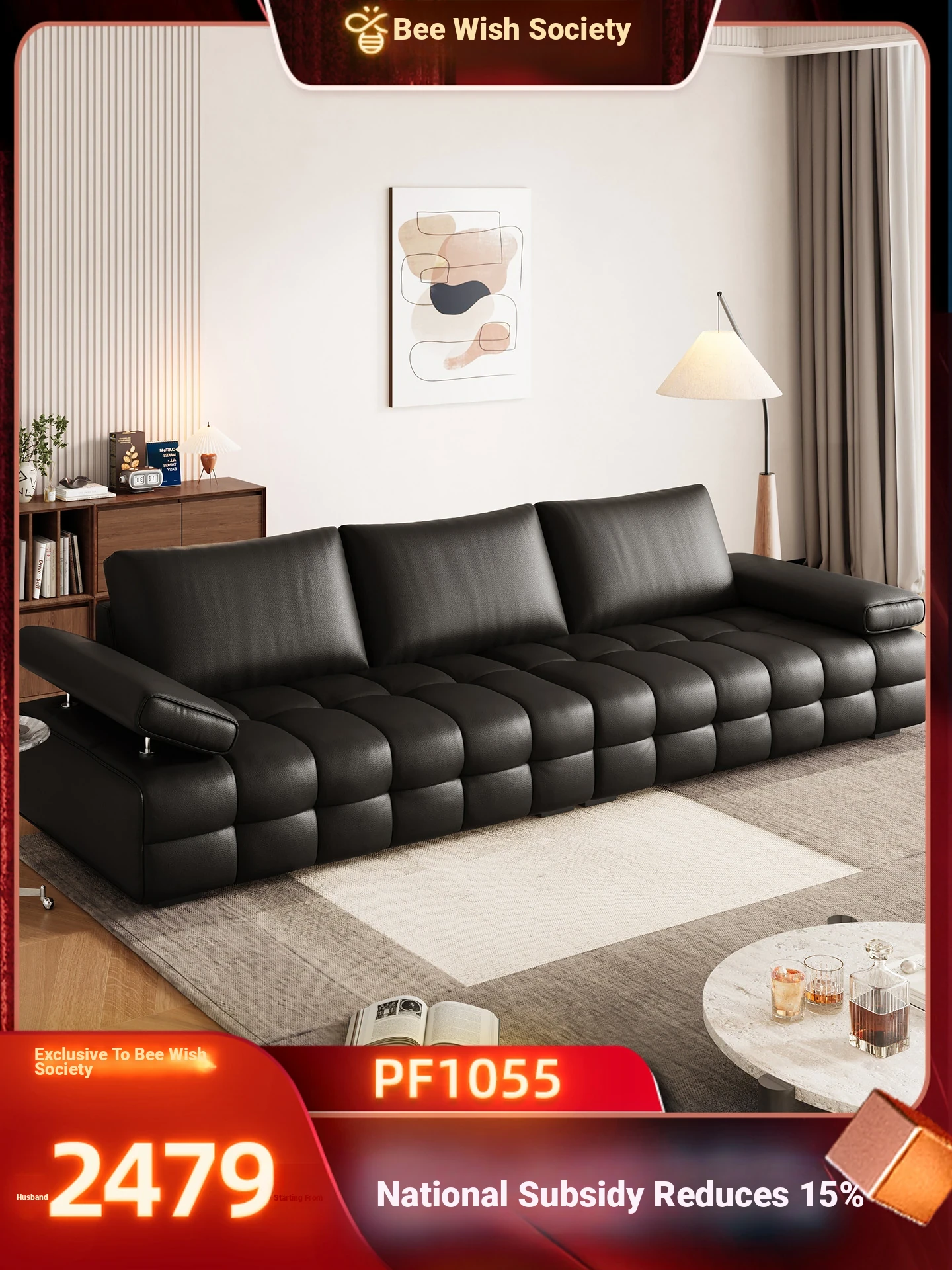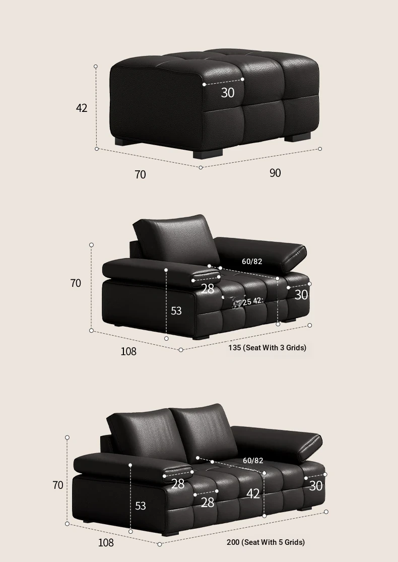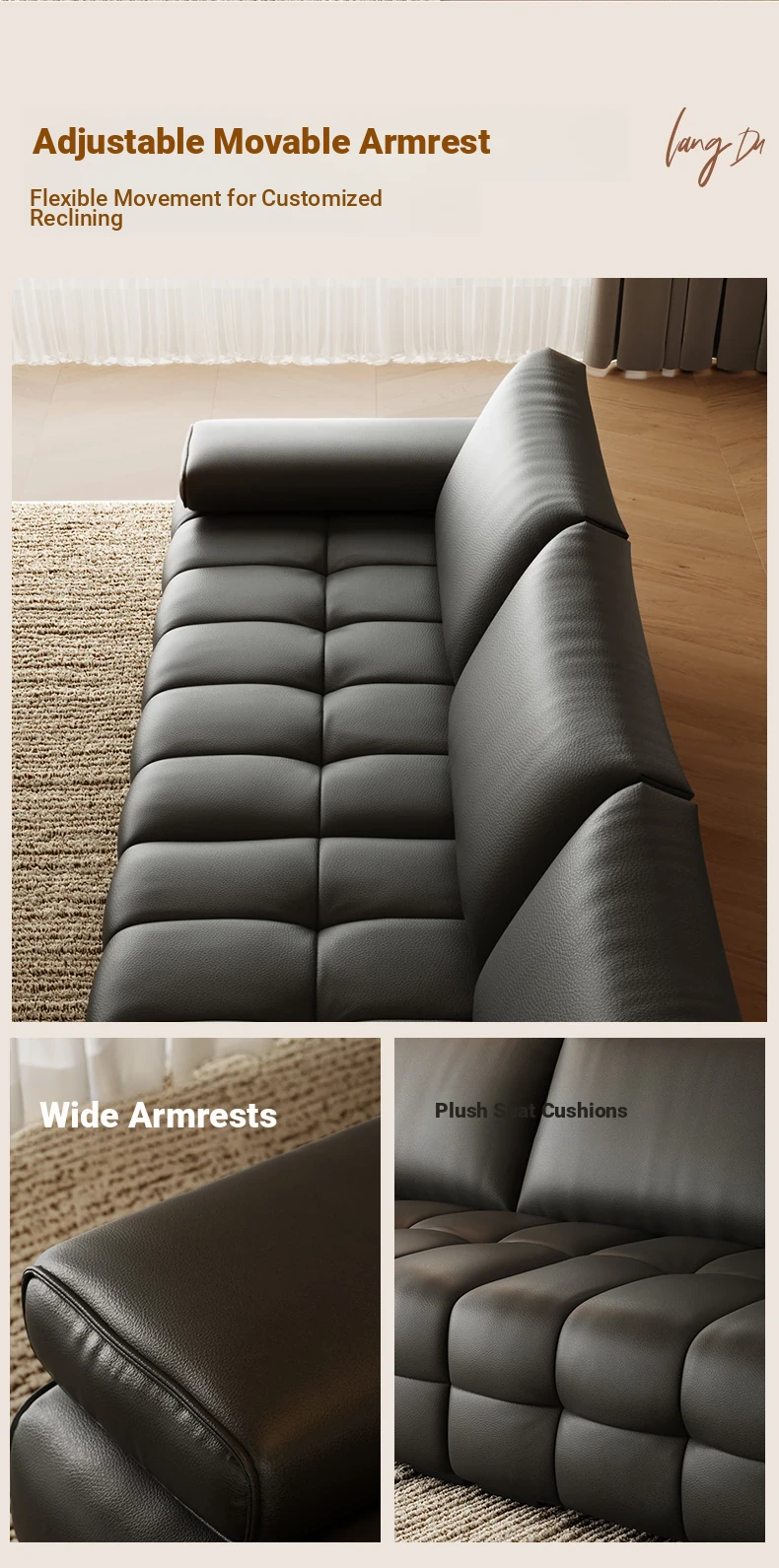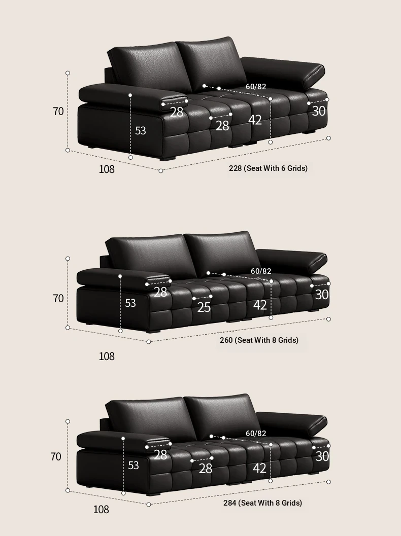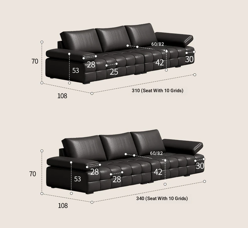 Bee Wish Society Luxury Lawrence Genuine Leather Sofa - Italian Style Wide Living Room Couch