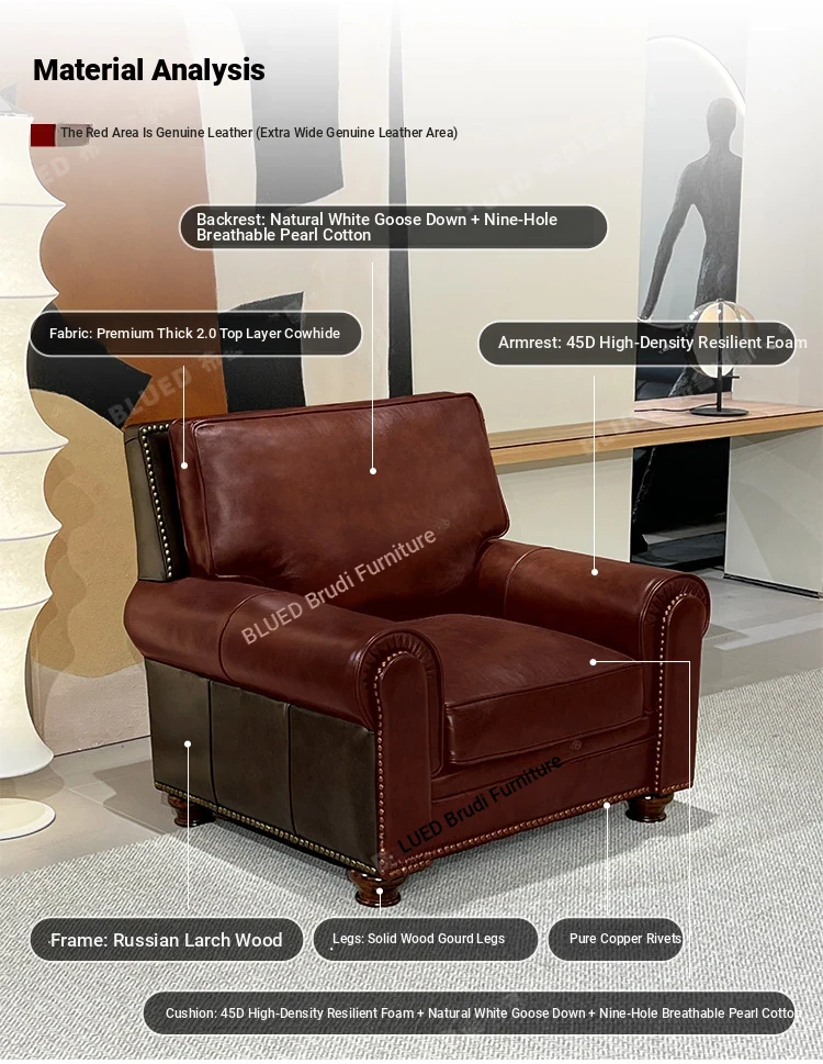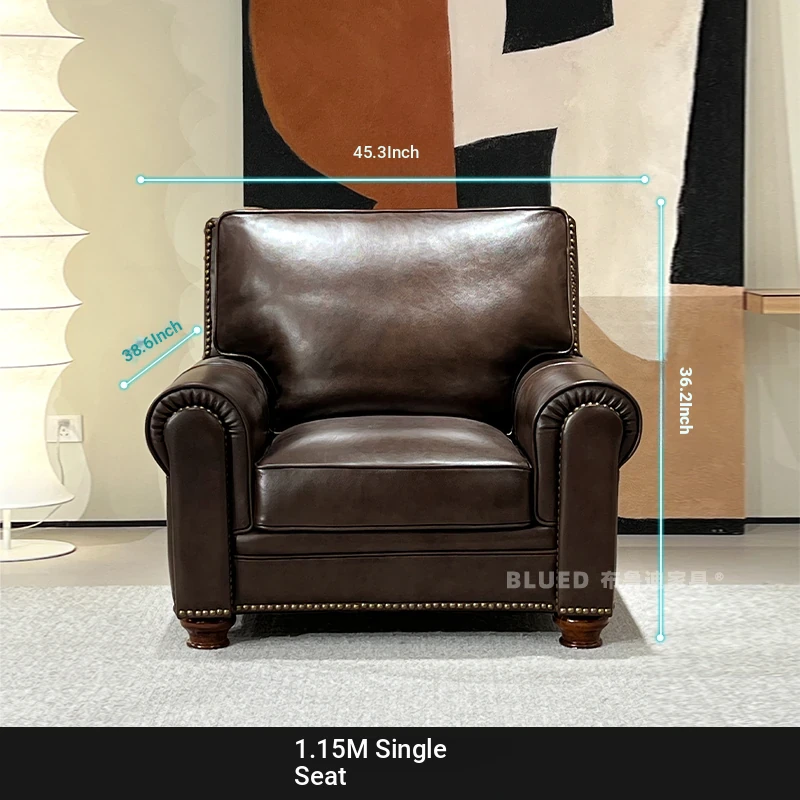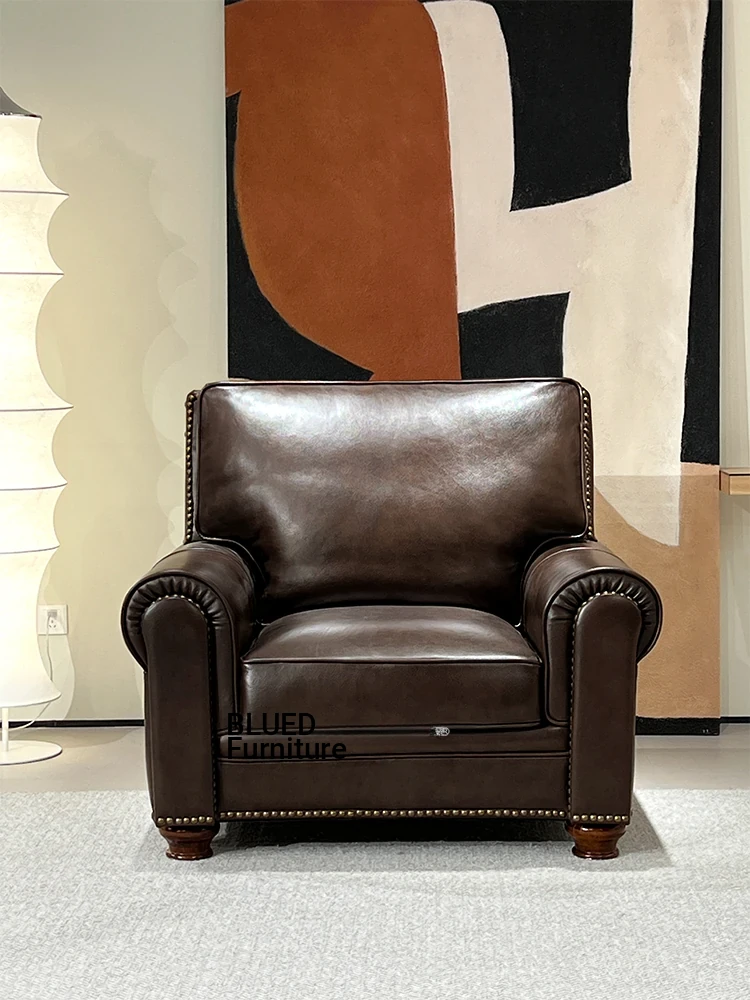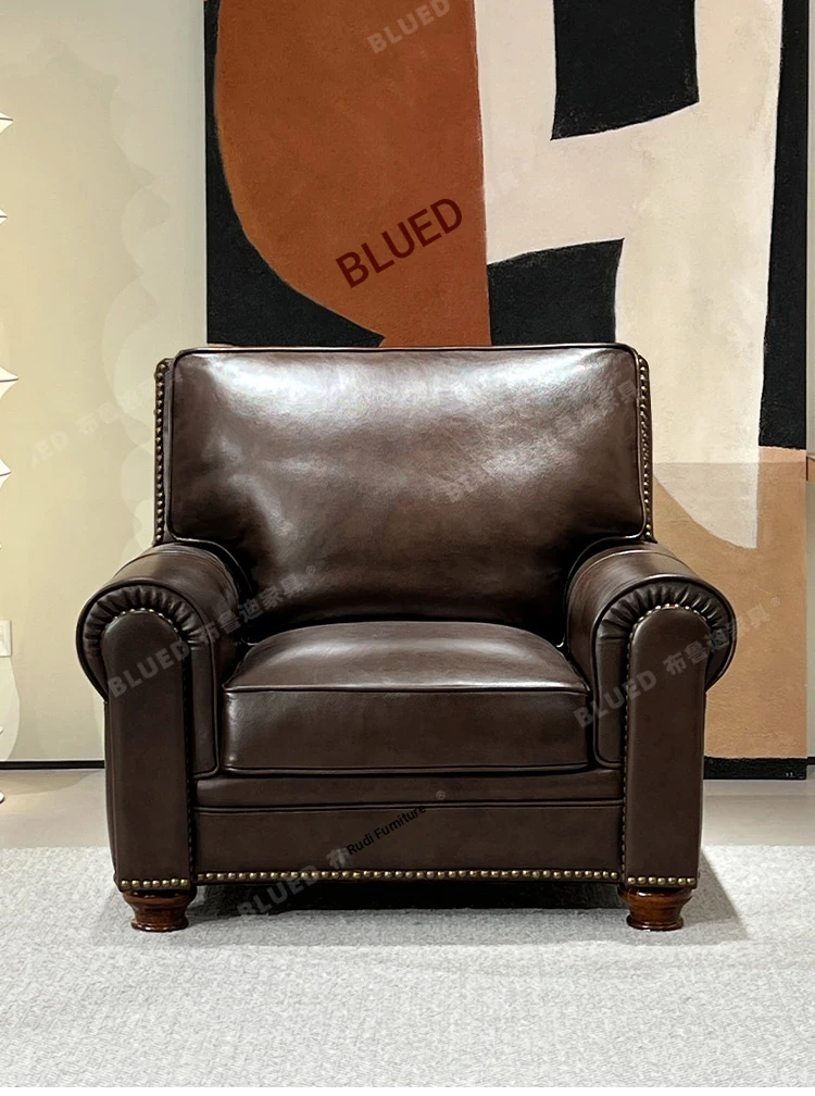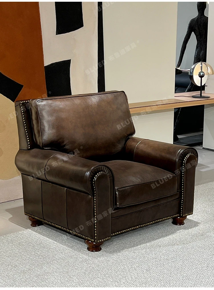 Brudy American Vintage Single Sofa - Luxurious Retro Tiger Chair, Crafted with Premium Oil Wax Leather and Top Grain Cowhide, Perfect for Your Living Room