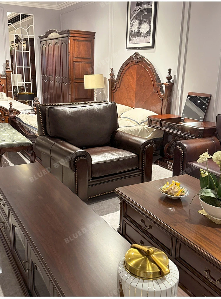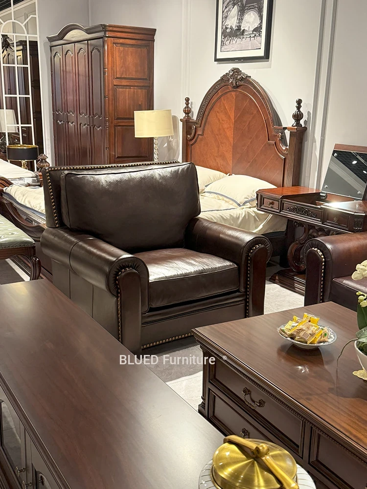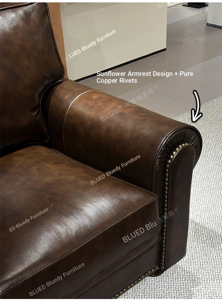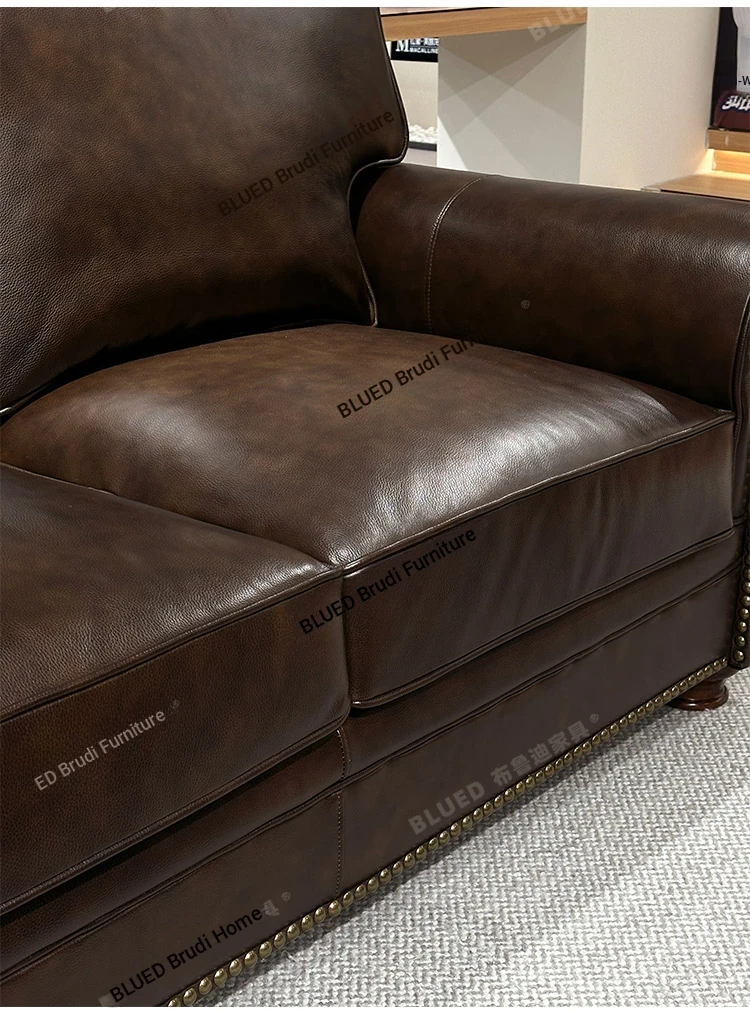 Brudy American Vintage Single Sofa - Luxurious Retro Tiger Chair, Crafted with Premium Oil Wax Leather and Top Grain Cowhide, Perfect for Your Living Room