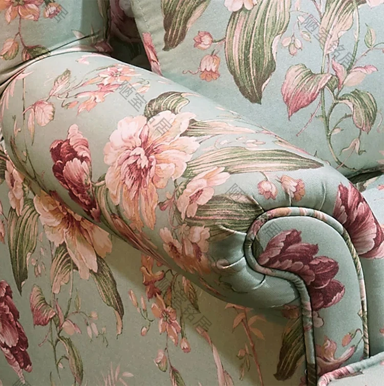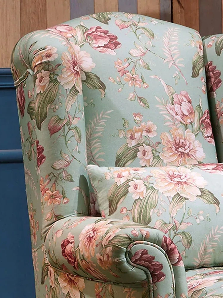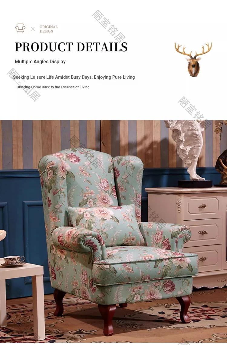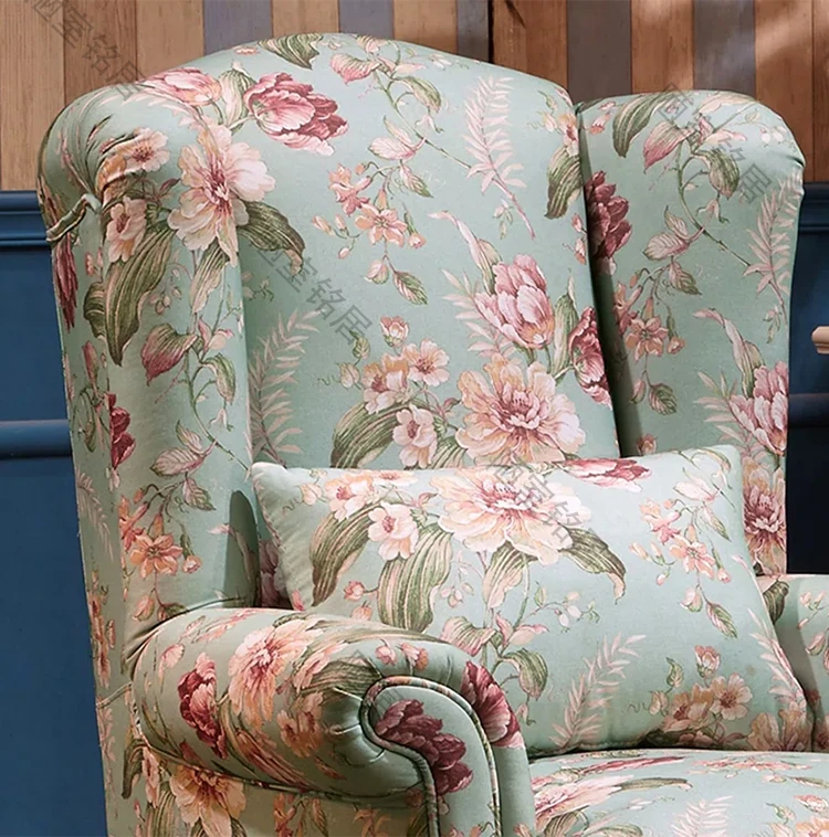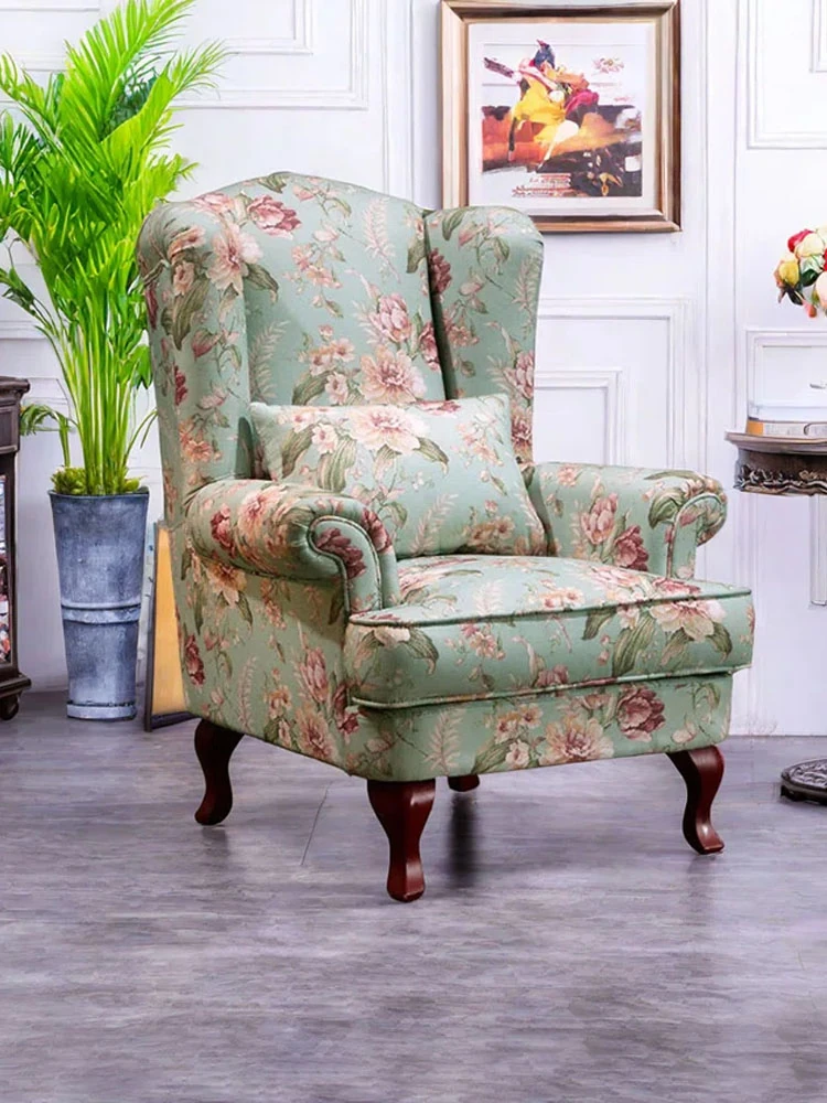 Chic American Country Mediterranean Floral Accent Chair - Luxurious Cotton Linen Single Sofa for Living Room & Balcony - Perfect for Cozy Spaces