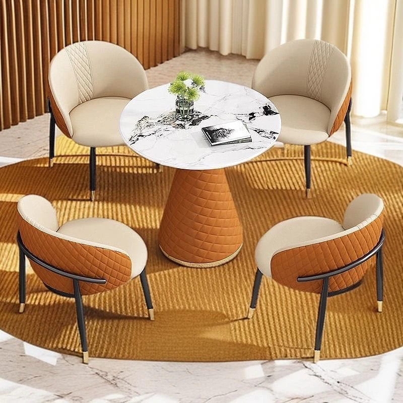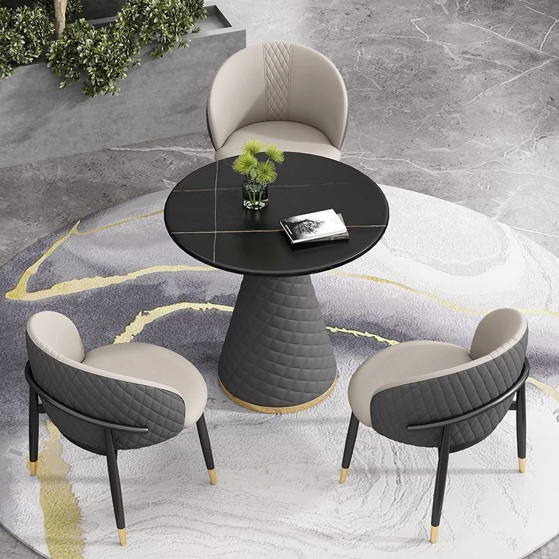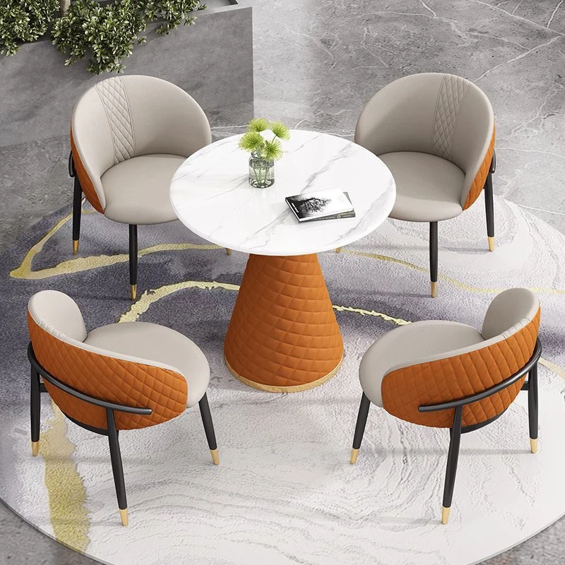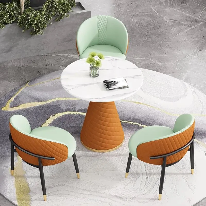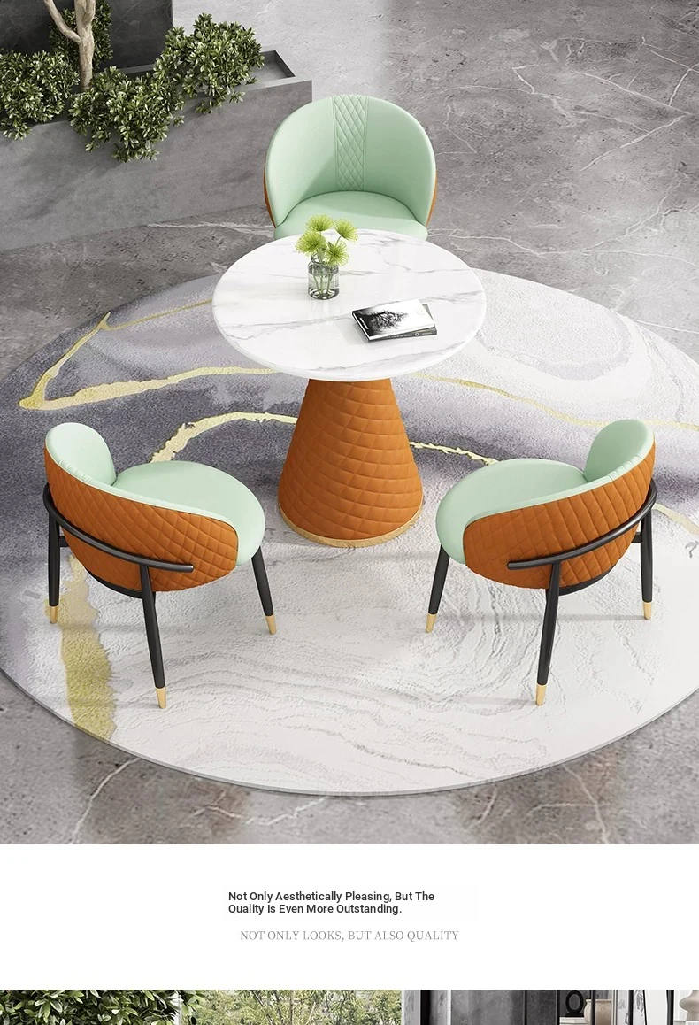 Chic Luxury Marble Reception Table and Chair Set - Perfect for Coffee Shops, Tea Houses, and Relaxation Areas - Stylish Lounge Chairs and Compact Round Table Combination for Welcoming Guests