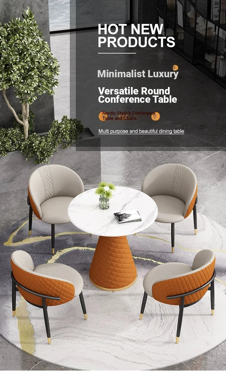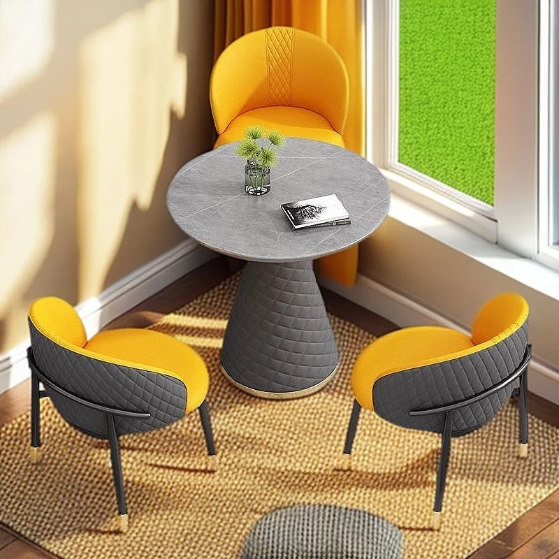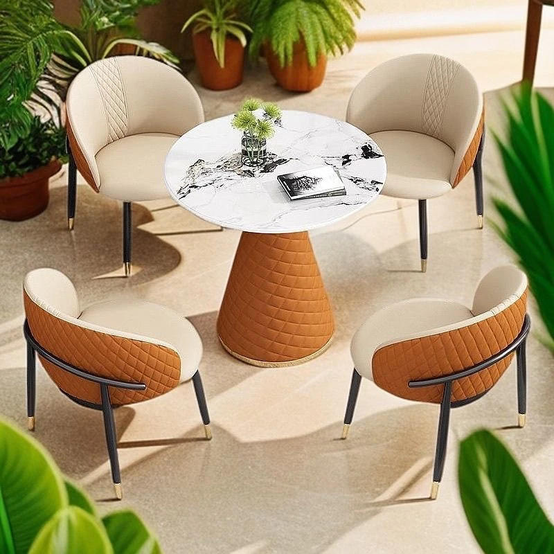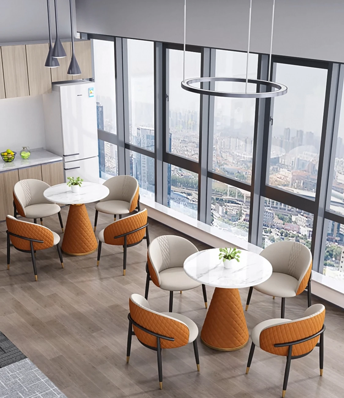 Chic Luxury Marble Reception Table and Chair Set - Perfect for Coffee Shops, Tea Houses, and Relaxation Areas - Stylish Lounge Chairs and Compact Round Table Combination for Welcoming Guests