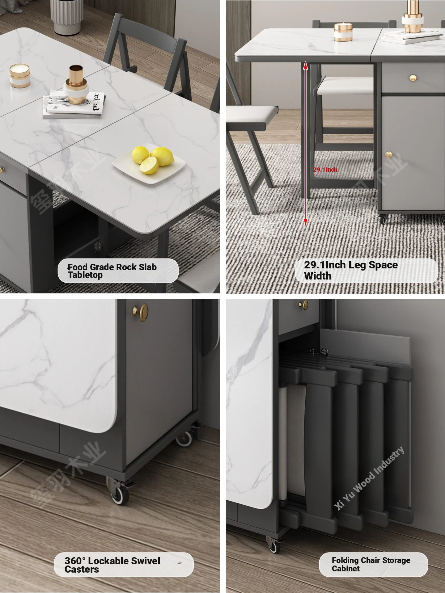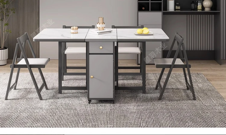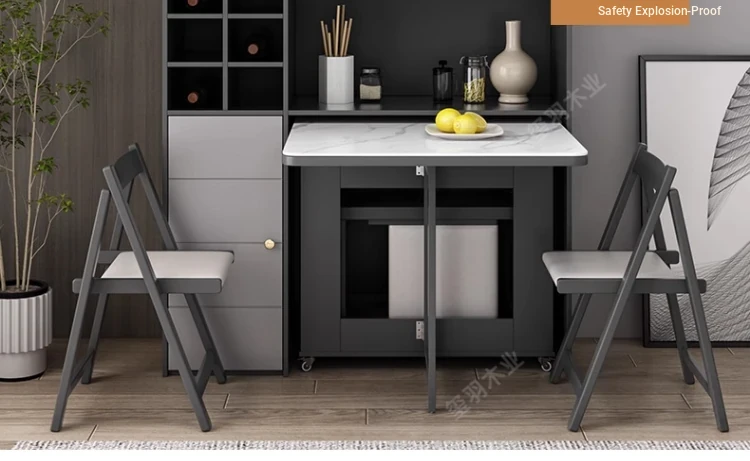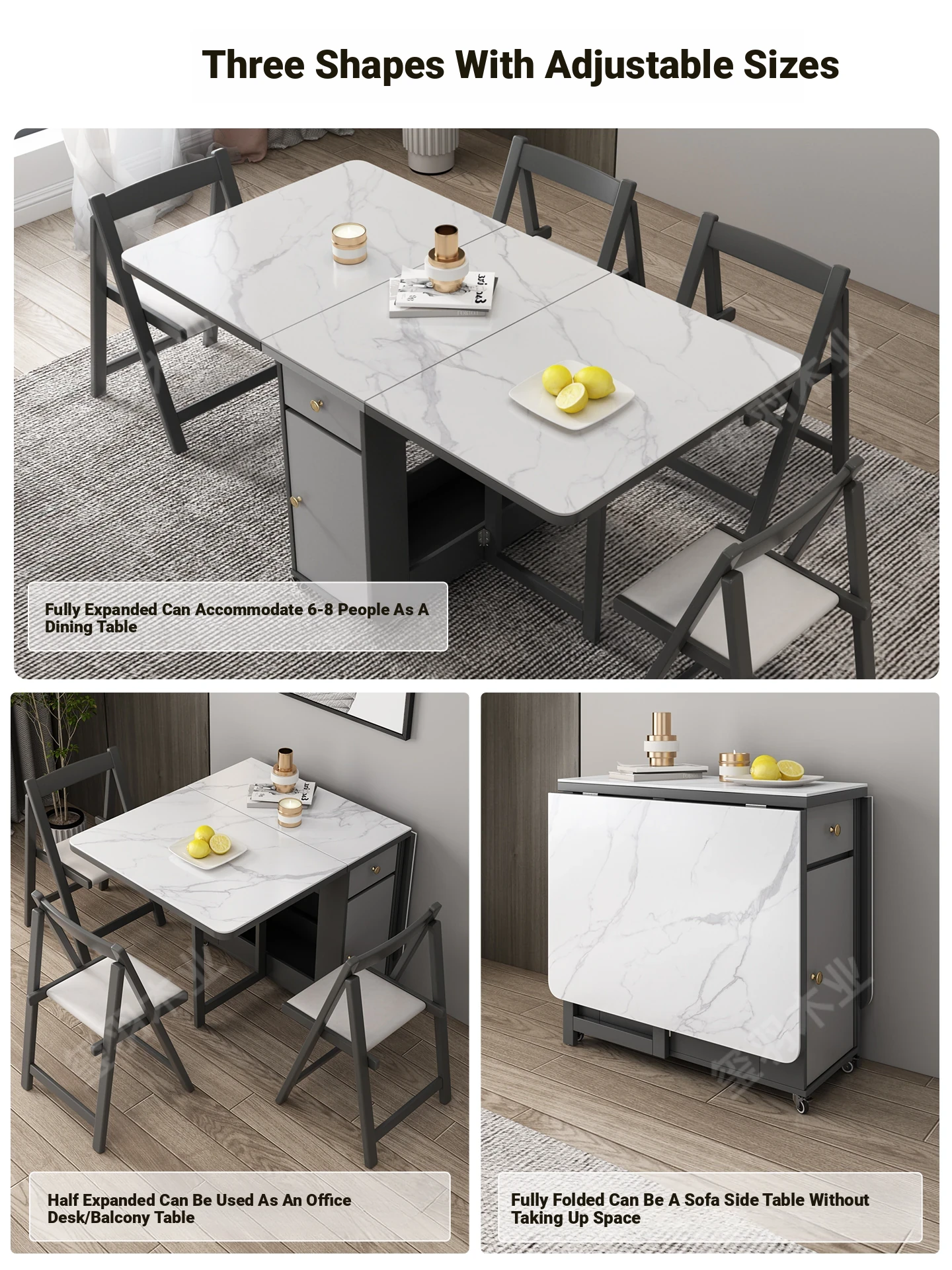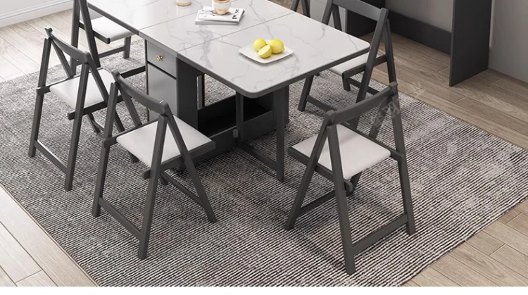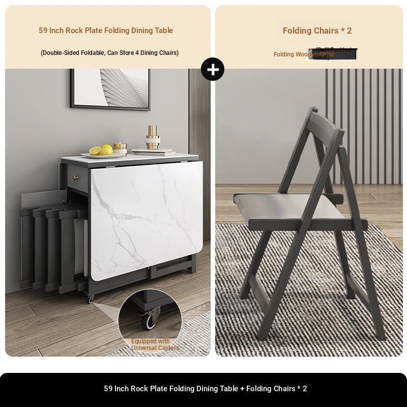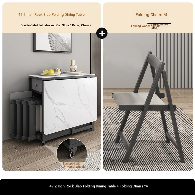 Compact Folding Dining Table with Chairs - Space-Saving Extendable Long Table Set for Small Apartments, Wall-Mounted Storage, Perfect for Meals on the Go