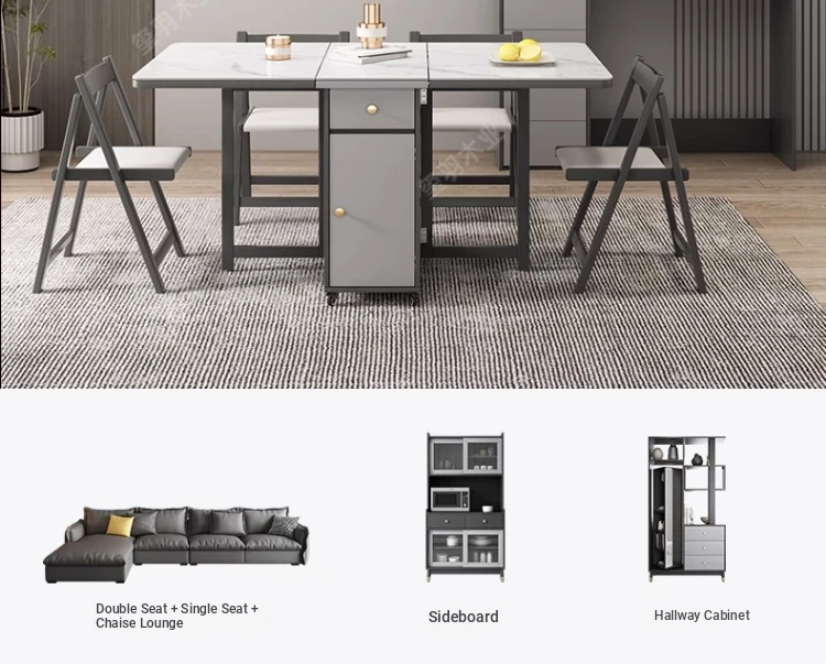 Improvement Series - Free folding table - Small space - 47.24in Gentle Gray + Wooden leather chair *6 ( ❤️ Refundable 100 yuan cash pack below)
