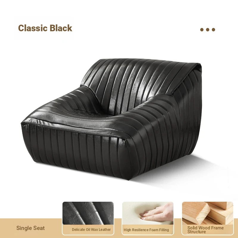 Classic black oil wax leather [sofa + pedal]]
