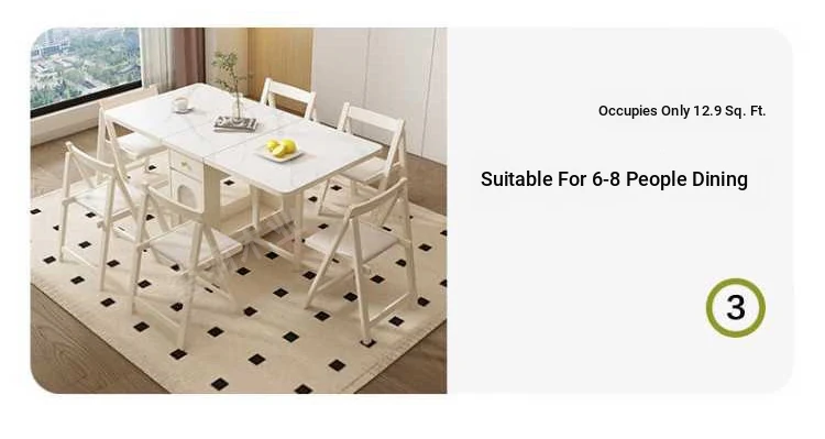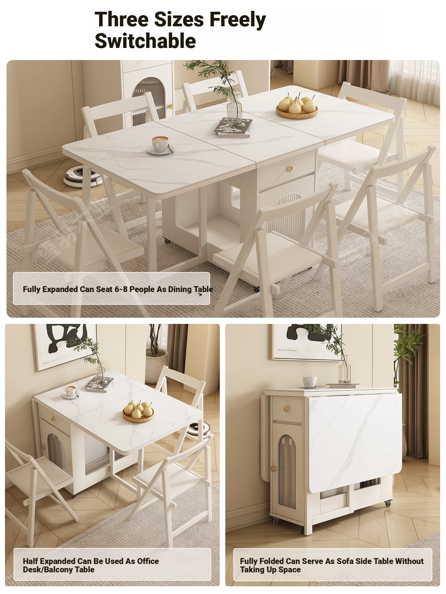 Creamy Rock Folding Dining Table and Chairs Set - Space-Saving Slim Rectangular Table for Small Living Rooms, Perfect for Wall Storage, Ideal for Home Use