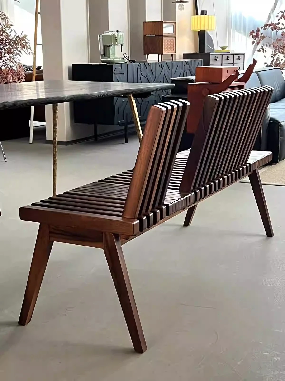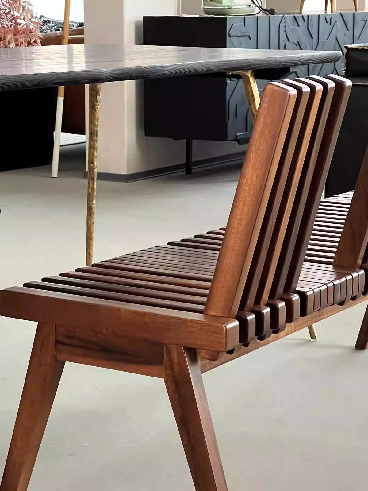 Creative Solid Wood Folding Bench - Minimalist Dining Table with Backrest for Living Room, Walnut Shoe Bench, Perfect for Casual Dining and Relaxation