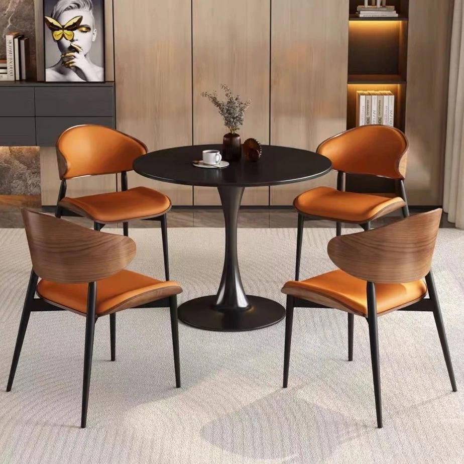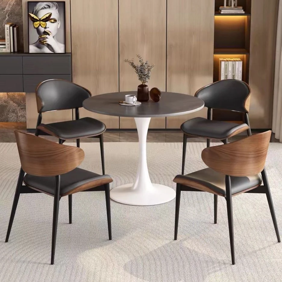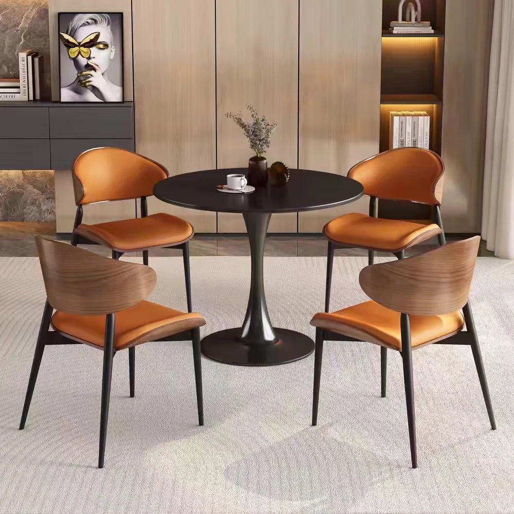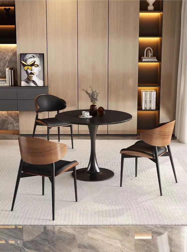 Elegant Nordic Solid Wood Chair and Rock Slab Meeting Table Set - Perfect for Sales Offices, Hotels, and Business Reception Areas with Stylish Round Design