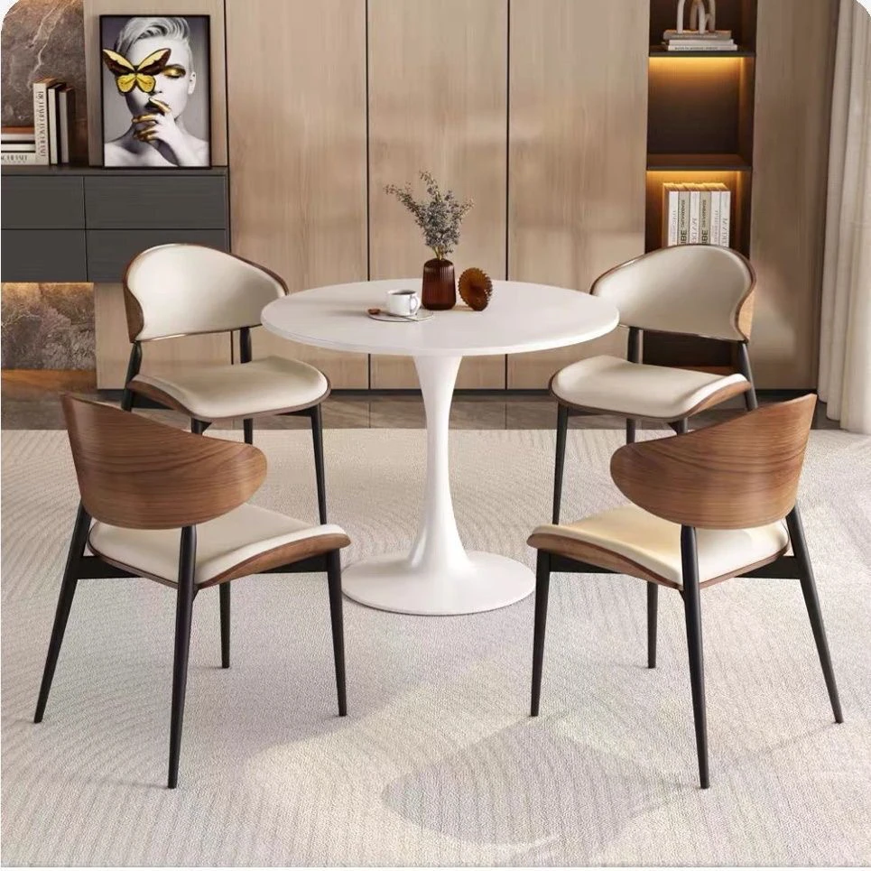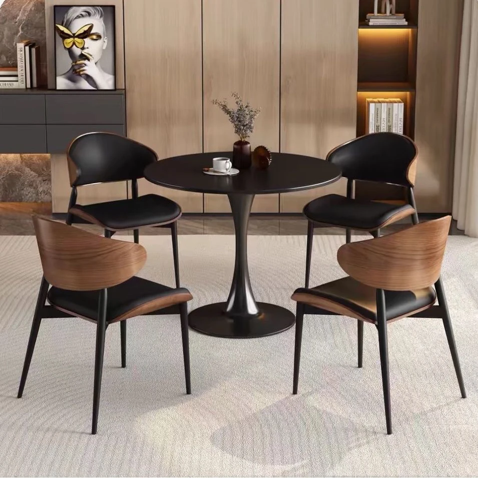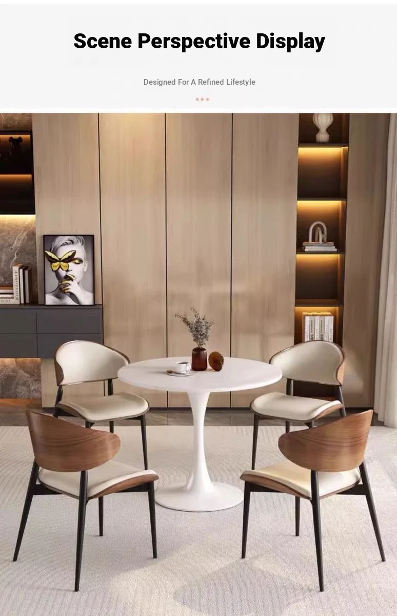 Elegant Nordic Solid Wood Chair and Rock Slab Meeting Table Set - Perfect for Sales Offices, Hotels, and Business Reception Areas with Stylish Round Design