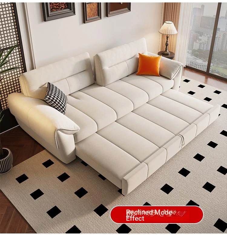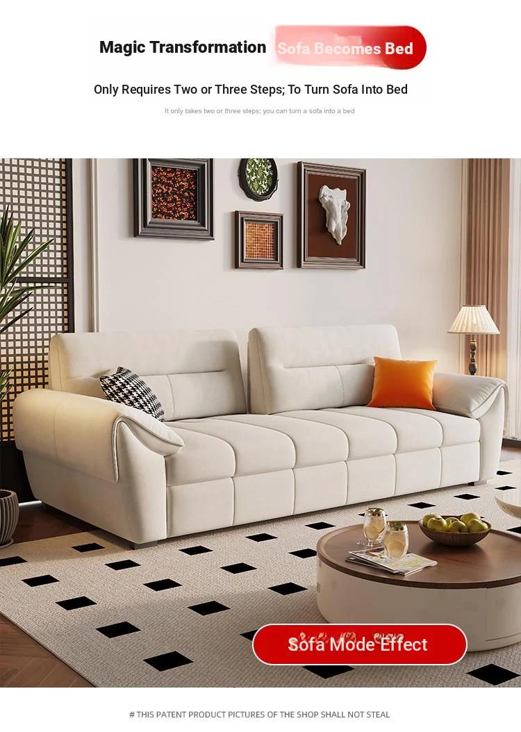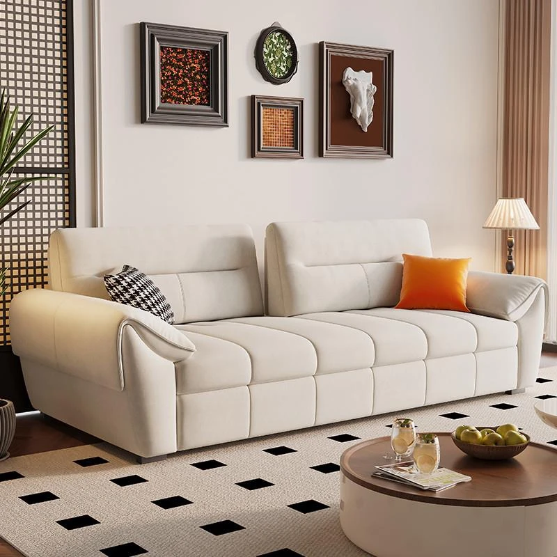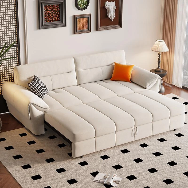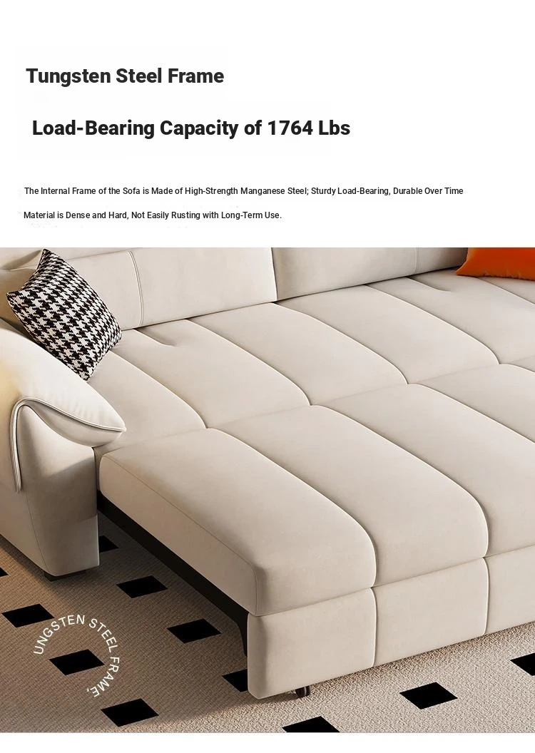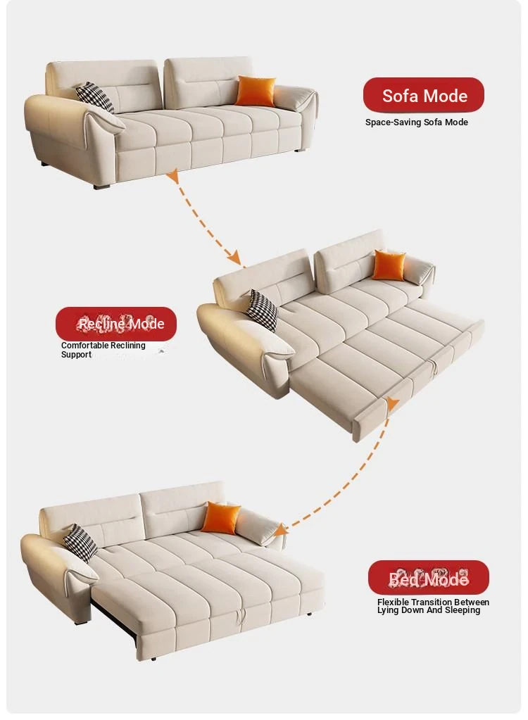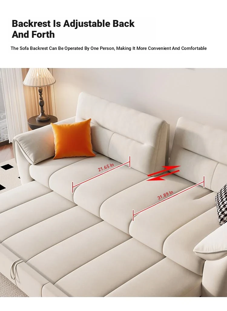 【Free Shipping to Hong Kong】Versatile Cream-Colored Sofa Bed with Adjustable Backrest - Foldable and Expandable Design Perfect for Small Living Rooms and Study Areas!