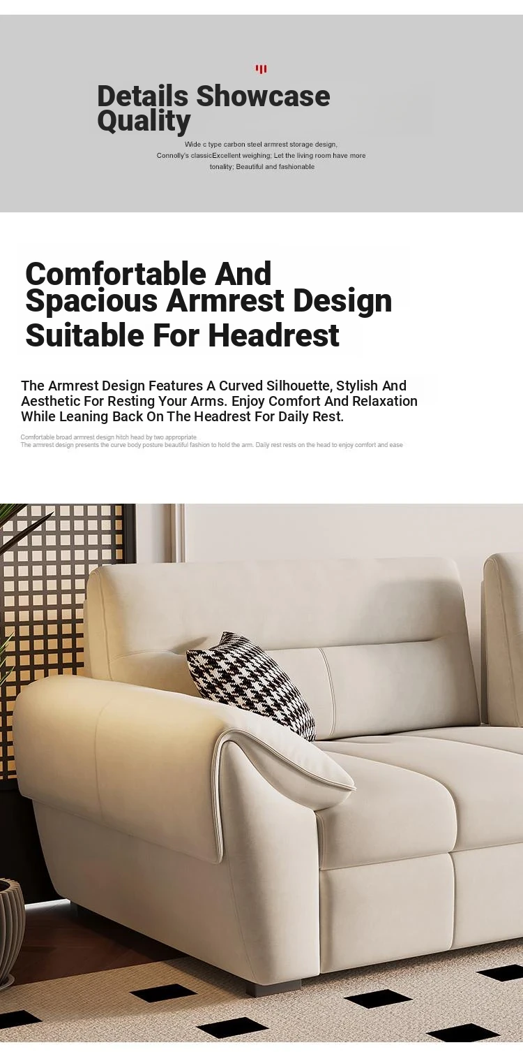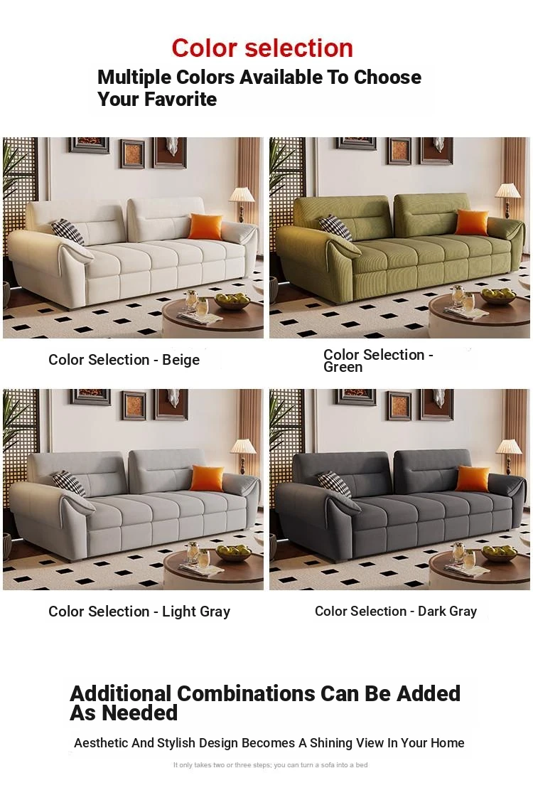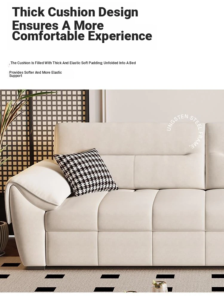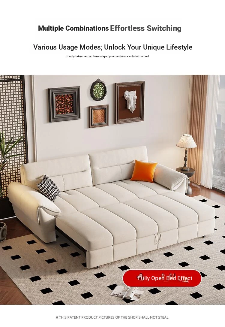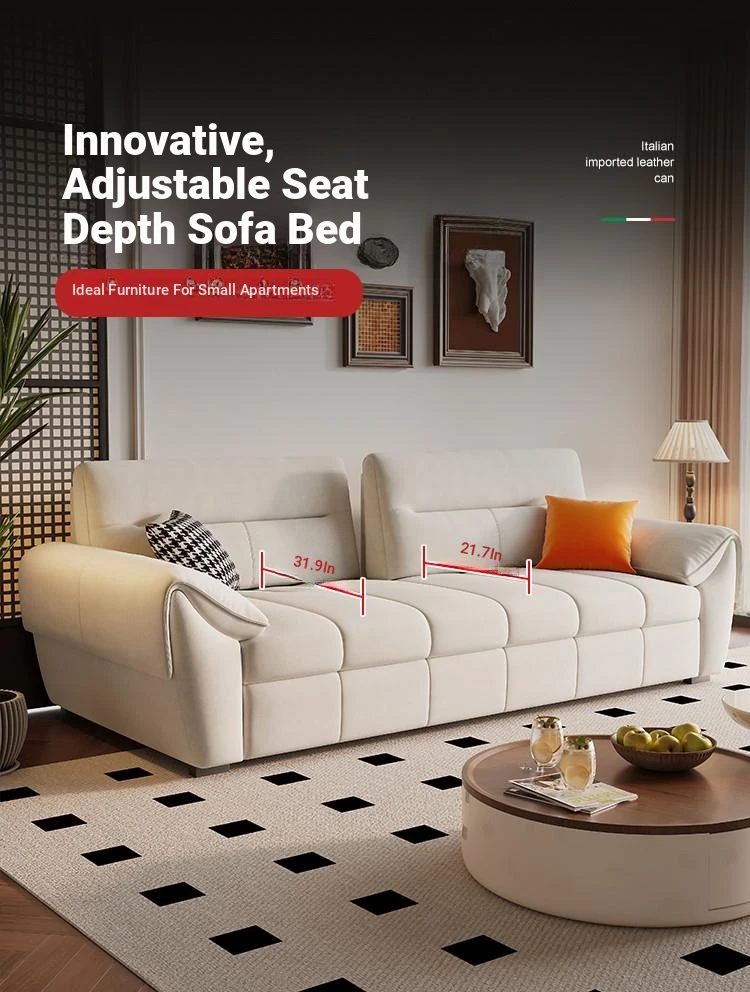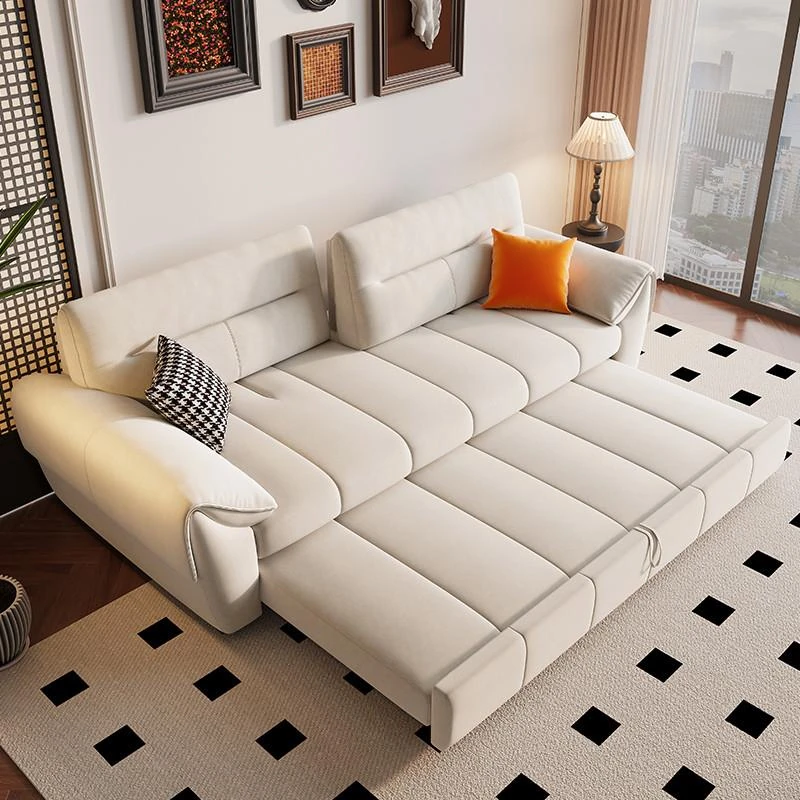 【Free Shipping to Hong Kong】Versatile Cream-Colored Sofa Bed with Adjustable Backrest - Foldable and Expandable Design Perfect for Small Living Rooms and Study Areas!