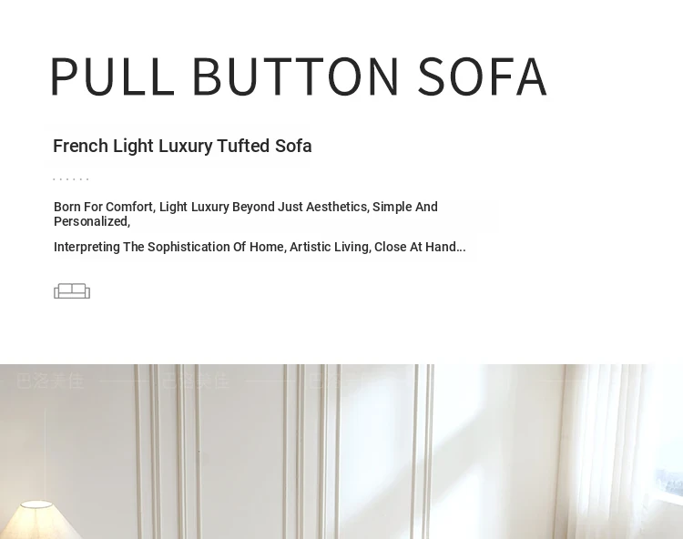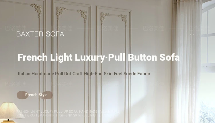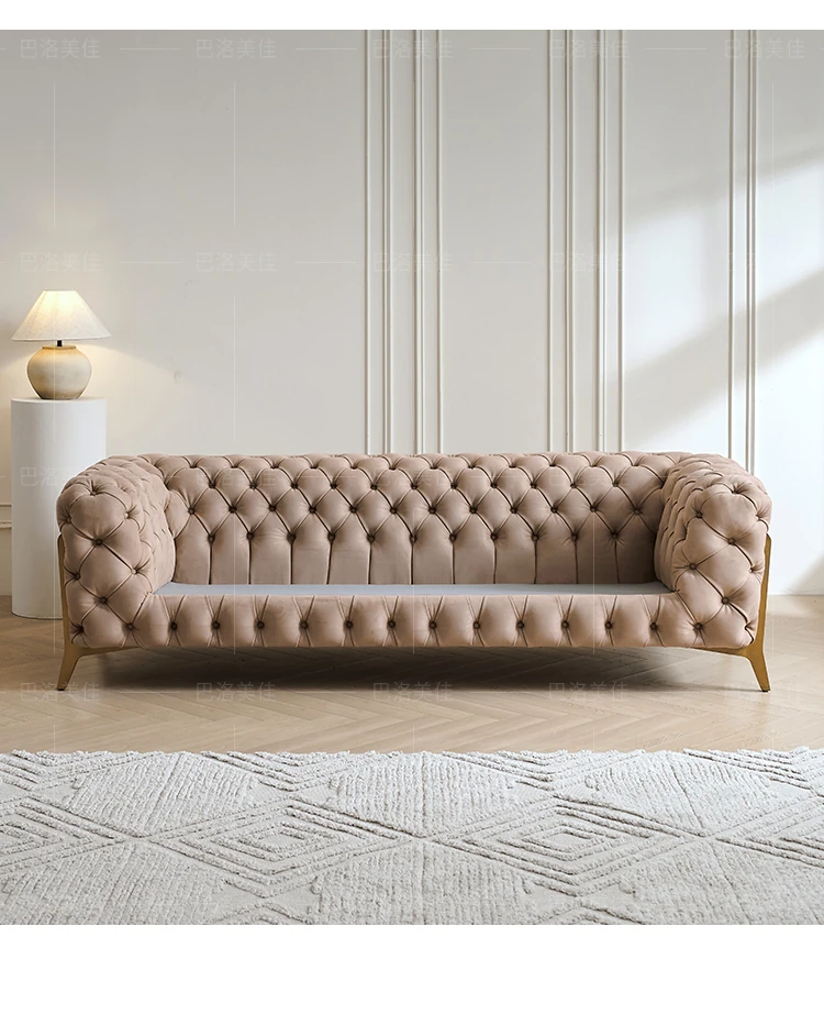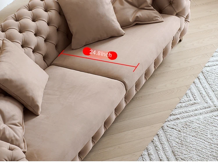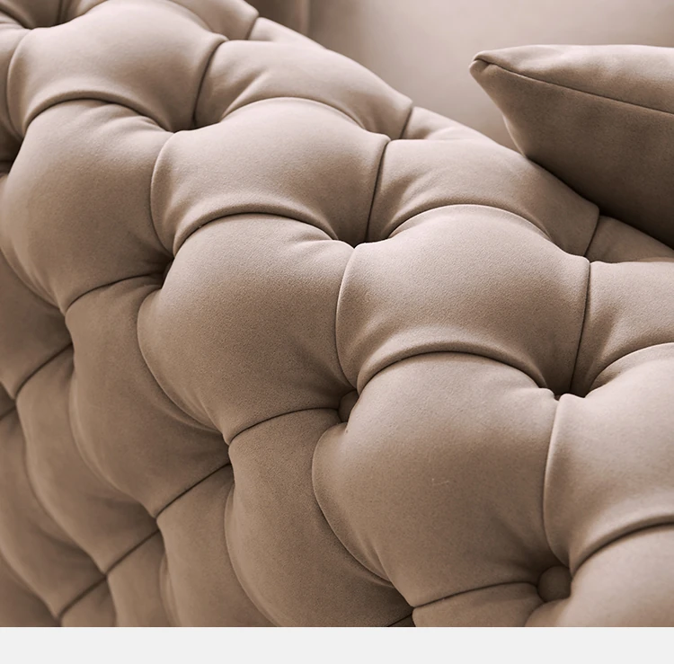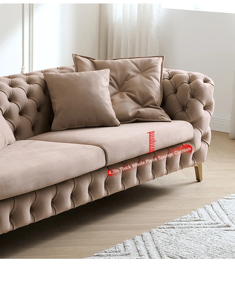 French Chic Light Luxury Sofa for Small Living Rooms - Designer Three-Seater American Fabric Sofa with Elegant Tufting - Perfect for Villas and Contemporary Spaces