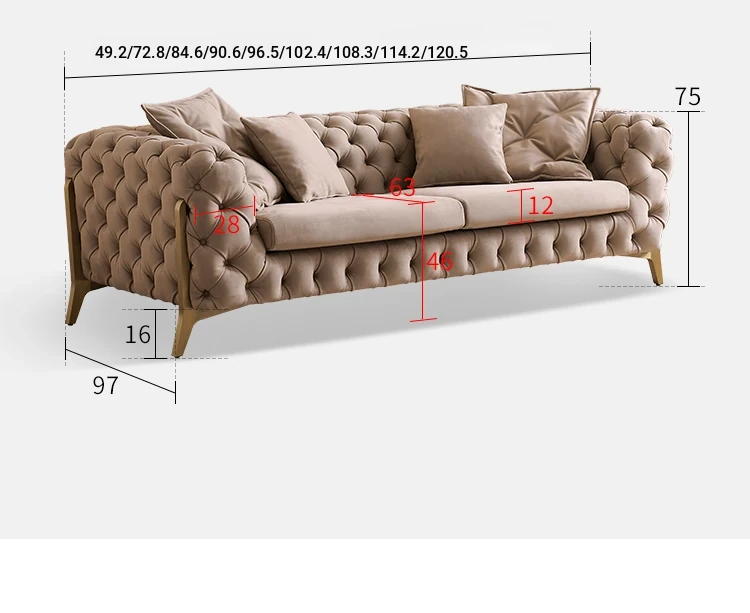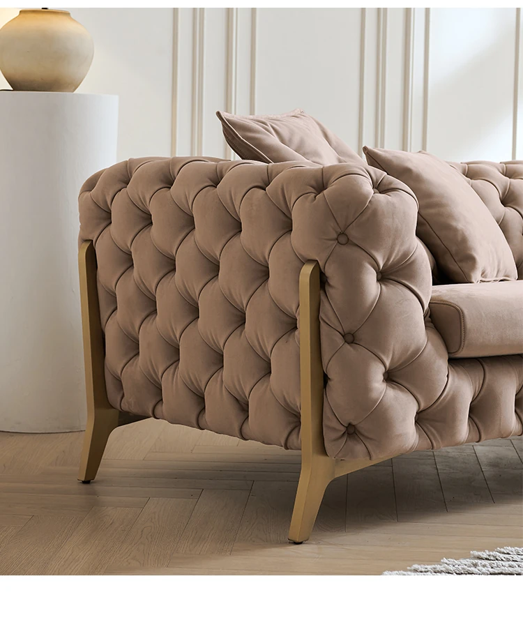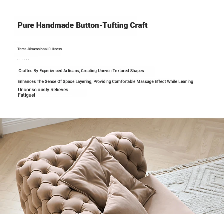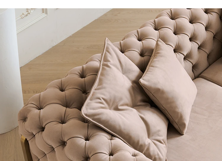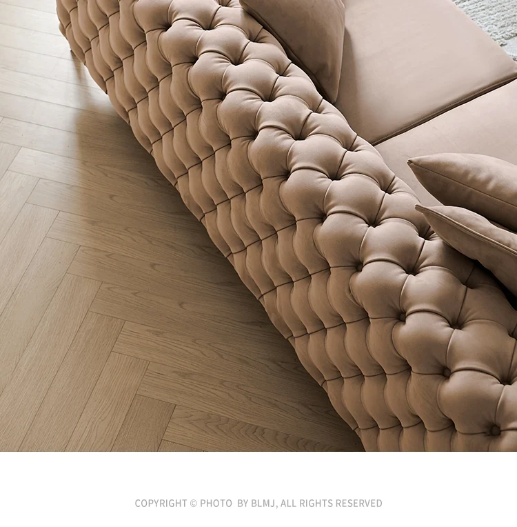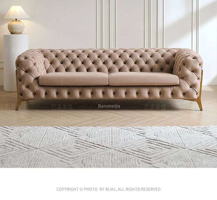 French Chic Light Luxury Sofa for Small Living Rooms - Designer Three-Seater American Fabric Sofa with Elegant Tufting - Perfect for Villas and Contemporary Spaces
