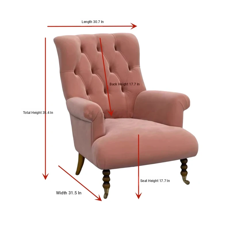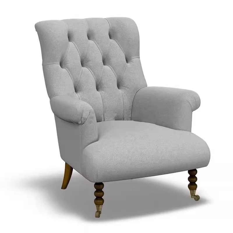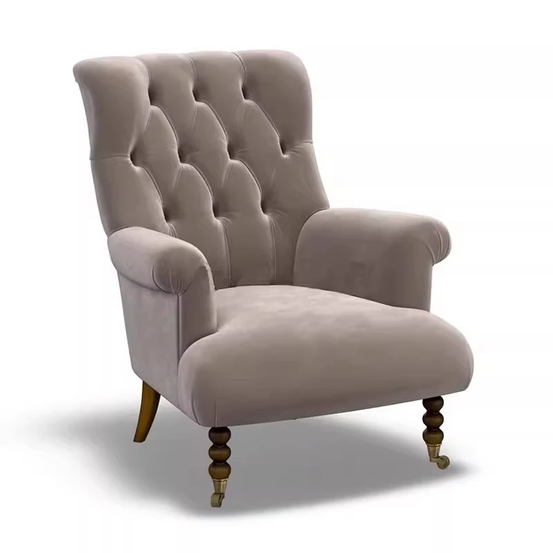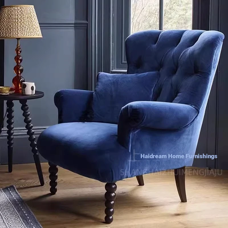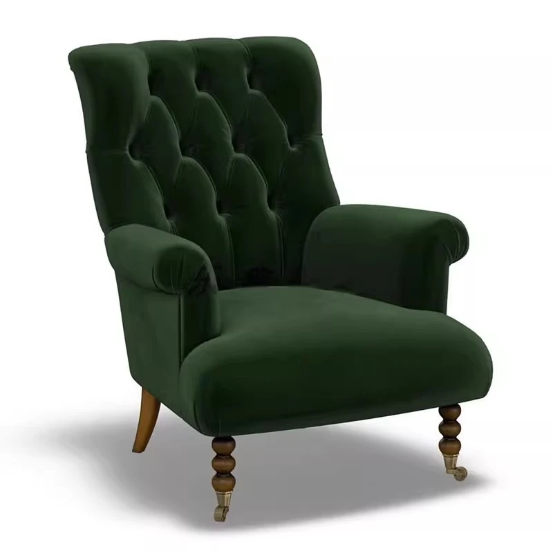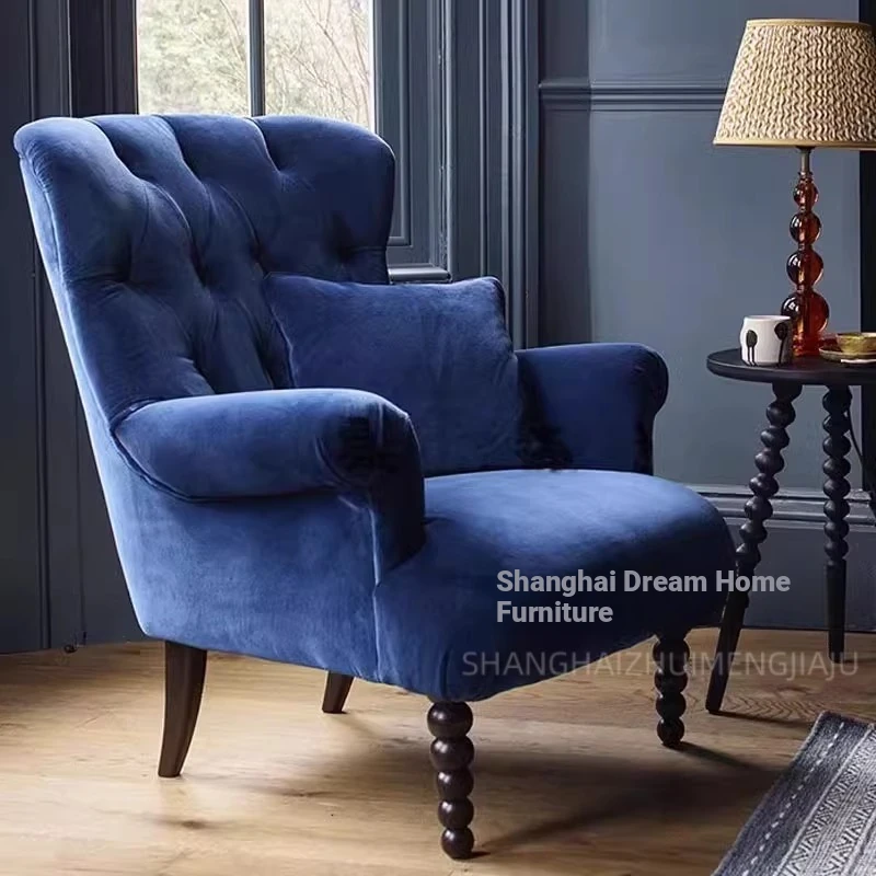 French Velvet Pull String Single Sofa for Small Living Rooms - Classic American High-Back Fabric Armchair for Study and Bedroom, Tiger Chair Design